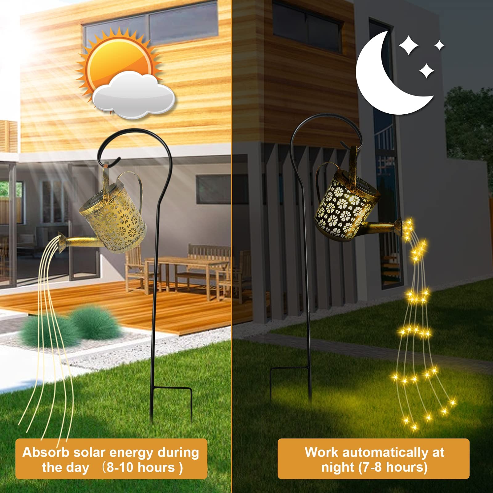Choisissez un endroit spécial dans votre jardin ou cour pour accrocher un arrosoir avec des lumières qui ressemblent â de l'eau qu’on verse. Lampe Solaire Exterieur Arrosoir Solaire Carillon Éolien Décoration De Jardin Carillons Éoliens Décoration Noel Exterieur Durée de fonctionnement : Éclairage 7-8h, charge 8-10h., étanche : oui. Nom du produit : Bouilloire solaire lumières imitant l’eau de la douche. Unique: Illuminez votre jardin avec des LED blanches chaudes disposées sur des fils de cuivre, évoquant une pluie d'étoiles étincelantes. L'effet visuel est renforcé par le moindre souffle de vent, créant une atmosphère romantique et captivante. Étanche: Conçu pour résister aux intempéries, cet arrosoir solaire bénéfic La lumière s'allume automatiquement à la tombée de la nuit et s'éteint à l'aube, ce qui permet moins de coûts généraux et plus d’économie en énergie. Veuillez le laisser absorber de l'énergie solaire pendant la journée et l'allumer à la tombée de la nuit. Lampes solaires pour jardin extérieur : les arrosoirs solaires ont un bel effet d'éclairage, ces lampes solaires pour l'extérieur créent une atmosphère chaleureuse et romantique. Avec son bel éclairage, la lampe solaire s'adapte parfaitement à la maison, au jardin, au balcon et à la terrasse. Les lampes solaires sont une très belle et merveilleuse décoration pour le jardin.Batterie... Maximisez la lumière du soleil disponible : assurez-vous que les panneaux solaires ne sont pas à l’ombre d’arbres ou de structures qui peuvent interférer avec l'exposition directe au soleil. Caractéristiques de la pile : Ni-MH 1,2 V AA600 mAh. Lanterne solaire à LED pour arrosoir, étanche, design creux, décoratif Panneau solaire : 50 x 50 mm, 2 V, 120 mAh. Ce n'est pas que le produit soit endommagé, ne vous inquiétez pas. [Le produit est sensible à la lumière et s'éteint lorsqu'il est allumé pendant la journée. ] Lumières LED créatives de jardin ? L'arrosoir peut faire votre jardin ruisseler de lumière telle une guirlande lumineuse. C’est romantique et féerique.
