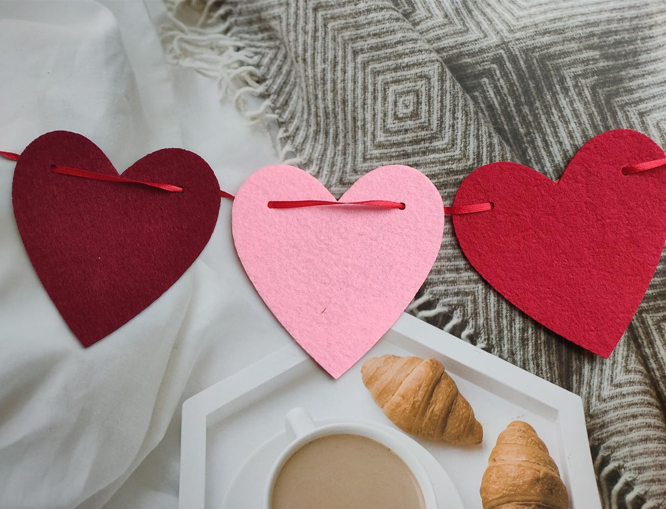 Caractéristiques : Matériau : feutre. 40 Pièces Coeur Suspension de Plafond Rouge Coeur Guirlande Suspensions... 【Réutilisable】 : cette adorable bannière guirlande est fabriquée à partir d'un matériau en feutre durable et facile à attacher. Couleur : rose, rouge et rouge foncé., 3., Profitez du processus de bricolage : ces bannières sont en forme de cœur, 3 couleurs différentes incluses. Contenu : 4 bannières en forme de cœur pour la Saint-Valentin., Remarque : 1., Les mesures étant prises à la main, les tailles indiquées peuvent varier légèrement., 2., Veuillez noter qu'une légère différence de couleur est possible en raison de l'éclairage et de l'écran., 1., Matériau : ces cœurs rouges sont fabriqués en feutre et assemblés avec une ficelle rouge. Couleur : rose, rouge et rouge foncé (comme sur les photos). Jolies décorations : Ces belles guirlandes en forme de cœur sont parfaites pour décorer un rideau ou un plafond à la Saint-Valentin, un mariage, une demande en mariage, une fête, une fête prénuptiale, une danse scolaire et des fiançailles. 2 trous sur la surface pour chaque bannière, facile à assembler, il suffit de les enfiler ensemble avec une aiguille et une corde, une bonne chance pour vous et les enfants de travailler ensemble, et d'améliorer leur capacité pratique , 4., Nombreuses utilisations : ces belles guirlandes en forme de cœur sont parfaites pour accrocher un rideau ou un plafond à la Saint-Valentin, un mariage, une demande en mariage, une fête, une fête prénuptiale, une danse scolaire et des fiançailles. Quantité : lot de 4 guirlandes de cœurs en feutre. et la corde mesure environ 2,5 m. Guirlande De Cœur En Feutre, Banderole Décorative, Banderole En Forme De Cœur, Pour La Saint-valentin Bagues de fiançailles,Bague en forme de cœur et d'ange pour femme... Capoda Guirlande de cœurs en feutre 3D pour décoration de Saint-Valentin, rouge, rose, blanc, décoration à suspendre avec perles en bois pré-enfilées
