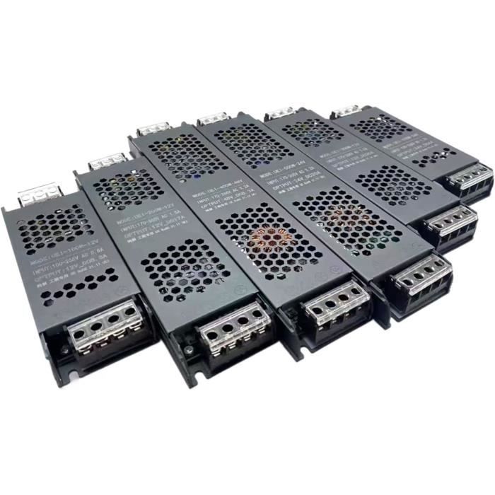 Refroidissement par convection à air libre. Compatible avec rampes lumineuses LED 3528, 2835, 3014, 5050, 5630, 5730., Inclus dans la livraison : 1 bloc d’alimentation. (Non conseillé pour une utilisation en salle de bain). Remarque spéciale : Ce transformateur est fourni sans mode d’emploi, câblage, interrupteur marche/arrêt ni vis. Alimentation 24v Dc Qiilu Transformateur De Commutation Régulé Surveillance De Sécurité 12V Transformateur Led Dimmable 1PC Adaptateur d'alimentation 12V 5A 60W, transformateur de commutation... Réglage de précision de la tension de sortie possible sous différentes conditions d’alimentation. Caractéristiques : Test de vieillissement 100 % pleine charge. Connexion : L, N : Alimentation CA. Installation par un électricien professionnel qualifié hautement recommandée. Sa conception particulièrement rigoureuse, et la qualité de ses composants, en font un excellent choix pour alimenter tout type de module Remarque : Il s'agit d’un transformateur DC 12 V ou 24 V (au choix) destiné à une utilisation professionnelle pour rampe lumineuses LED? système de surveillance, caméras de vidéosurveillance, caméras IP, etc. Sécurité et conformité : CCC/FCC/CE. Température de fonctionnement : 0~40 ℃. Éclairez votre aventure Tout-Terrain : Choisir la meilleure rampe LED... GND : puissance de sortie DC «-». Température de conservation : -20~60 °C. Bonne qualité et haute performance. Entrée universelle AC/gamme complète. Tension d’entrée : AC110–265 V 50/60 Hz. A propos de la méthode de calcul : si votre rampe LED compte 60 LED/m et si chaque LED vaut 0,2 W, il faut alors calculer la longueur maximale de la rampe LED : 0,2 W/× 60 LED/m = 12 W/m, 24 W (produit vendu ici) ÷ 12 W/m = 2 m, donc pour soutenir la rampe LED : 60LEDs/m, 0,2W/LED, Longueur maximale = 2 m. 24v 21a DC Universel Transformateur Adaptateur D'alimentation à