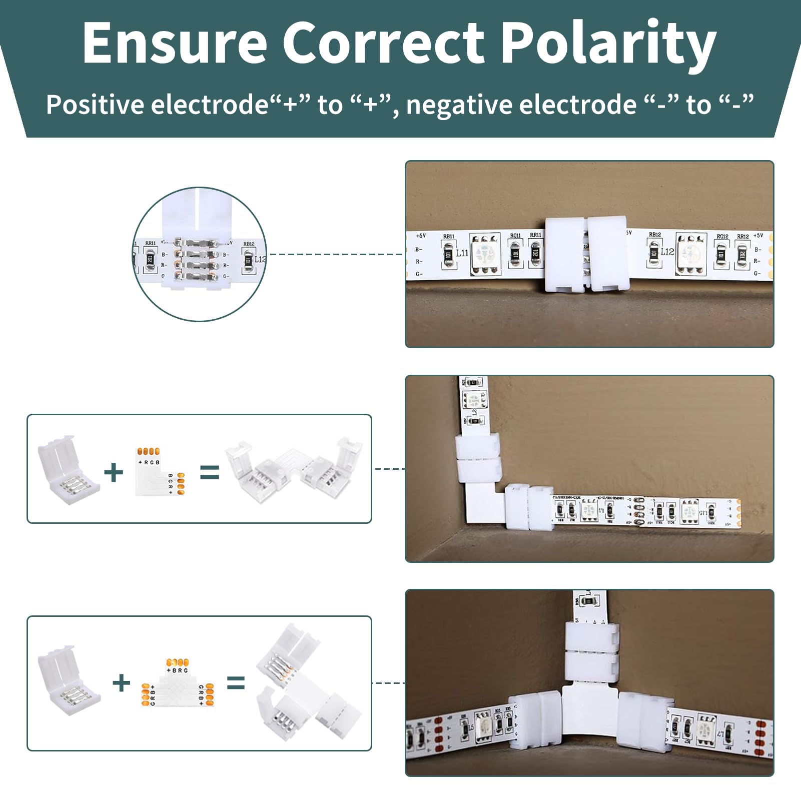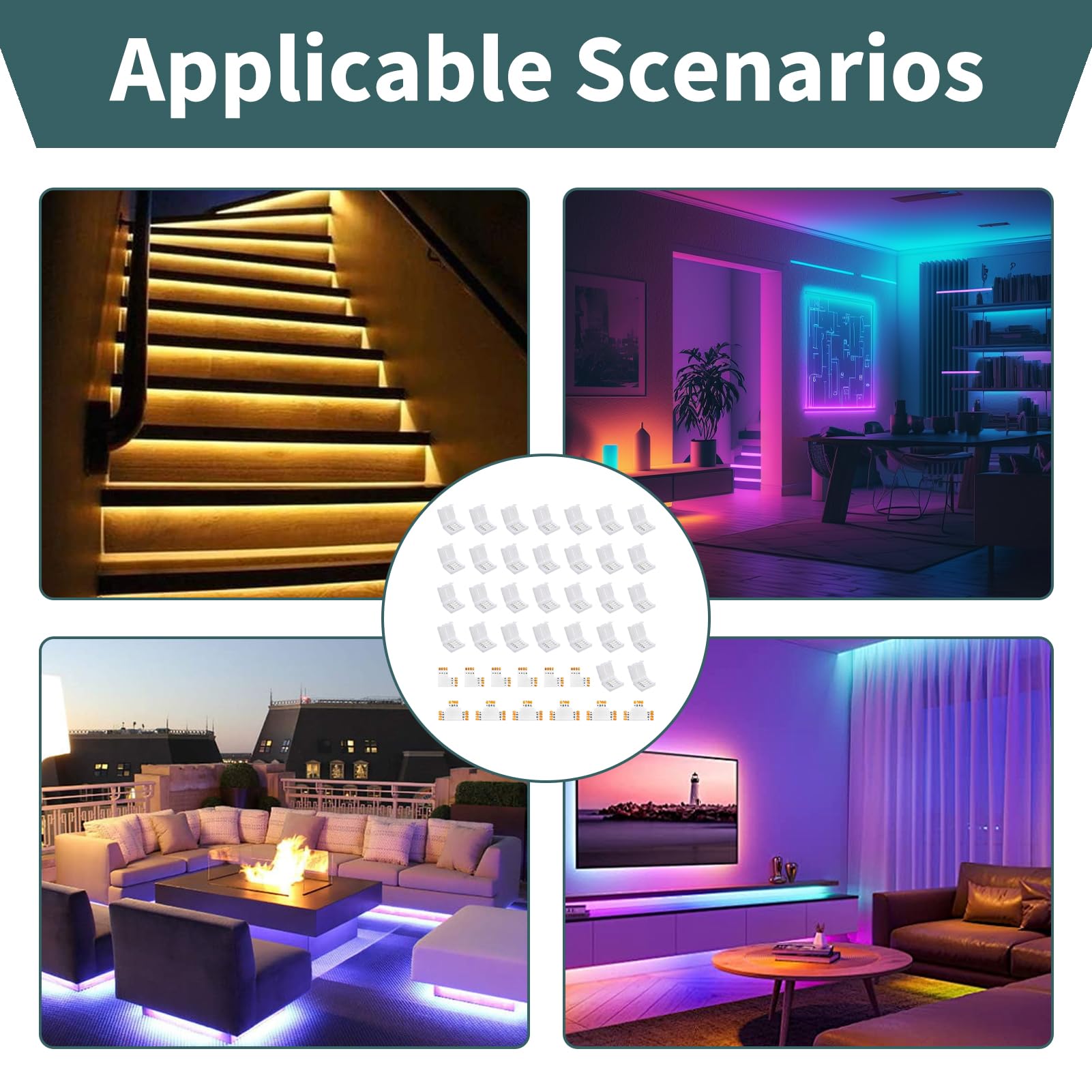 Découvrez la facilité d'installation et la flexibilité qu'offre notre kit de 42 Connecteurs pour Bande LED RGB de 10 mm. Connecteur 4 Broches SMD5050 Connecteurs Bandes LED RGB 4 Broches Compatibilité Étendue Conçus pour les bandes LED RGB de 10 mm, ces connecteur ruban led 4 broches en t assurent une adaptation parfaite et sécurisée... Investissez dans notre Kit de Connecteurs pour Bande LED et transformez votre espace avec lumière et couleur. Les connecteurs sont faciles à utiliser avec un système de verrouillage simple qui ne nécessite aucun outil. Parfaitement adapté pour les LED SMD5050, ce kit comprend 6 connecteurs en forme de L, 6 en T, et des connecteurs angulaires pour une mise en œuvre sans soudure de vos projets d'éclairage. Grâce à une construction robuste et une conception intuitive, ce kit est idéal pour les amateurs de DIY et les professionnels désirant une installation rapide et efficace. 【Installation Sans Soucis】Connecteur ruban led 4 broches 10mm profitez d'une installation sans découpe ni soudure grâce aux connecteurs à angle droit, simplifiant l'assemblage et préservant l'intégrité de vos bandes LED. Chaque connecteur est conçu pour offrir une transition fluide et une distribution égale de l'électricité, garantissant ainsi un éclairage uniforme sans scintillement ni interférence. Ils assurent une connexion sûre et durable, capable de supporter les rigueurs de l'usage quotidien tout en maintenant l'intégrité des bandes LED. Kit Ruban LED 12V-230V réalisé sur mesure par l'équipe Lampe-eclairage... Raccord Led Ruban Connecteur Ruban LED 4 Broches 10mm Pour Strip LED RGB SMD5050, Blanc LED Connecteur Rapide à Connecteur Led Ruban 4 Broches 【Sécurité et Fiabilité】Chaque kit vient avec 30 connecteur ruban led 4 broche, 6 Connecteurs en Forme de L, 6 en T de fixation qui sécurisent les rubans en place, garantissant une installation propre et stable qui résiste au temps.