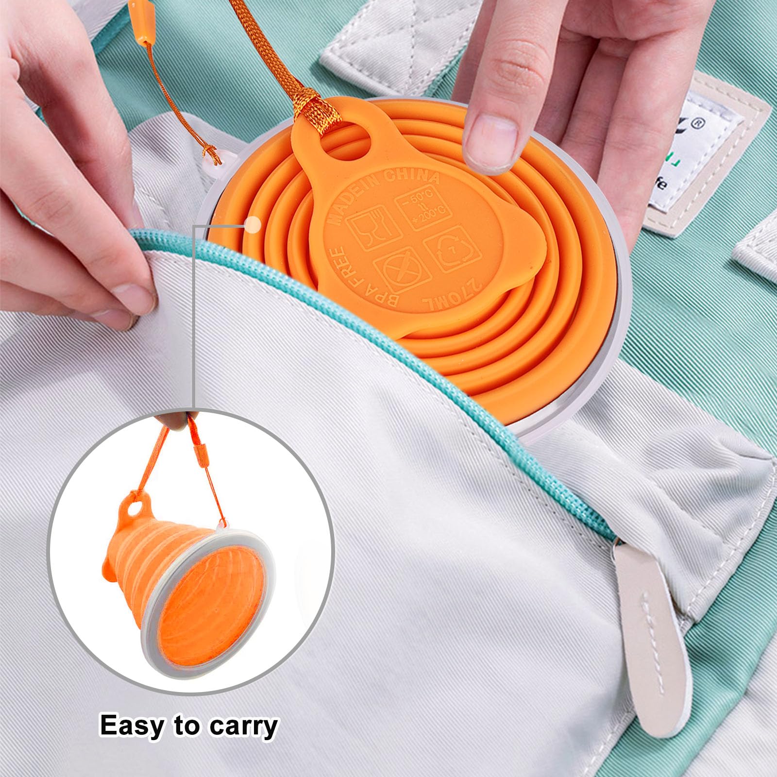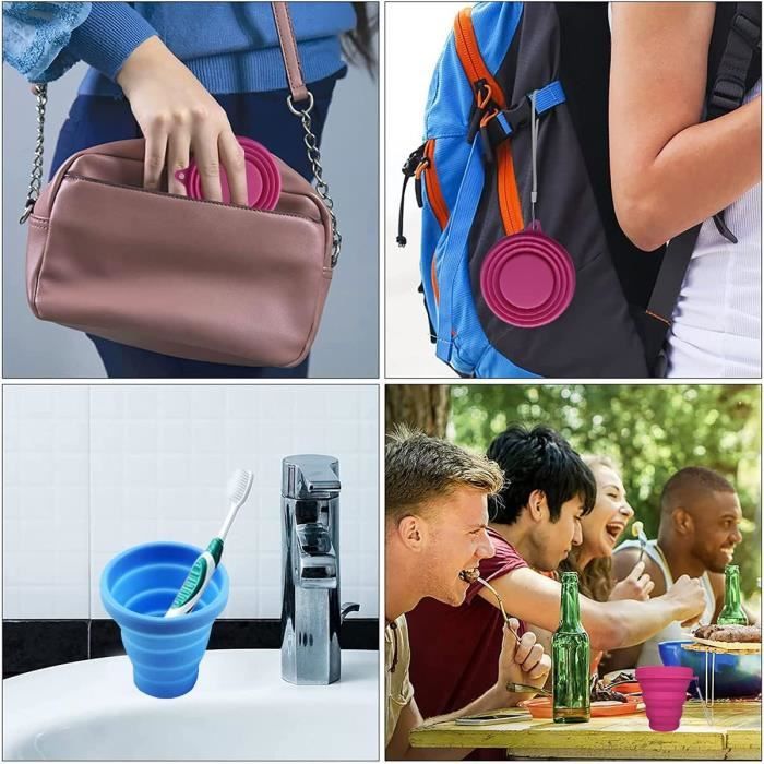 La tasse pliable en silicone est fabriquée en matériau silicone de qualité alimentaire, sans BPA. 🥃【Vaste gamme d'applications】Notre Tasse de Voyage Pliable convient aux boissons froides, au thé, au café, etc. Lot De 3 Gobelet pliable Tasse De Voyage Pliable,Tasse pliable,Tasses... Avant le pliage, le diamètre supérieur est de 9,5 cm, le diamètre inférieur de 4,5 cm, la hauteur de 8,5 cm. 🥃【Haute qualité】La Tasse de Voyage Pliable est faite de matériau en silicone de qualité alimentaire, Souple et facile à plier, Durable et flexible, Facile à transporter. Le Foldable Cup Silicone a une résistance à la chaleur, il est adapté à des températures comprises entre -40°C et 230°C. Le paquet comprend: 4 x gobelets à eau pliables Remarque : avant l'utilisation, laver à l'eau et stériliser à l'eau chaude, puis verser les boissons directement dans la bouteille. Après le pliage, la hauteur n'est que de 1,5 cm, Convient pour des températures comprises entre -40°C et 230°C. Une tasse pliable en silicone pèse environ 70 grammes, pas plus que le poids d'un citron, ce qui n'alourdira pas trop votre voyage. 🥃【Taille du produit】Contenance de 270 ml. tasse de café pliable en silicone 450 ml avec couvercle anti Tasse Pliante Tasse Pliable, Tasse De Camping, Verres À Shot Tasse En Silicone Portable Tasse De Voyage Verre Pliable De Voyage 🥃【Facile à utiliser】Chaque Tasse de Voyage Pliable est équipé d'une cordelette pour le suspendre facilement.