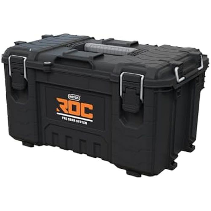 Keter Boite A Outils Keter ROC Pro Gear Mallette De Rangement Pour Outils électriques Noir/gris Valise A Outils Vide La boîte à outils ROC Pro Gear XL offre des fonctionnalités et des fonctionnalités professionnelles haut de gamme pour améliorer la commodité du chantier de travail. Avec la technologie « Fix-and-Hold » intégrée à la boîte à outils XL, vous pouvez maintenant accrocher vos boîtes à outils en toute sécurité, économisant ainsi de l'espace précieux dans votre atelier. La boîte à outils XL ROC Pro Gear 2.0 de Keter est durable et pratique, fabriquée en plastique de haute qualité. Elle supporte jusqu'à 72 kg et dispose de poignées pour un accrochage facile. Avec ses dimensions de 56,5 x 37,5 x 41,3 cm, elle offre un espace de rangement optimal pour vos outils, tout en permettant d'ajouter des demi-modules Cet ensemble est composé d'1 mallette 1 boîte à outils 1 coffre à outils 1 support à roulettes. Idéal pour le chantier ou l'atelier, cette solution... Loquets robustes IP65 : assure durabilité et protection dans des conditions de chantier difficiles. Bricolage Système modulable 3-en-1 ROC Pro - Noir - FR Technologie Fix-and-Hold : économisez de l'espace dans votre atelier en accrochant la boîte à outils XL tout en étant en mesure de l'ouvrir complètement et d'y accéder pour un travail efficace. Améliorez votre atelier et votre jeu de chantier avec la boîte à outils ROC Pro Gear XL La possibilité d'ouvrir complètement et d'accéder à vos boîtes à outils une fois montée vous permet de travailler plus efficacement. ROC Pro Gear 2.0 Systeme mobileSolution mobile et robuste pour l’organisation et le transport des outils, avec protection IP65 contre l’eau et la poussiere, compatible avec les séries Pro Ge En utilisant le système de support Pro Gear Mount, vous pouvez facilement accrocher la boîte à outils XL pour une fonctionnalité efficace Hang-and-Work, améliorant ainsi la configuration de votre atelier et de votre chantier.