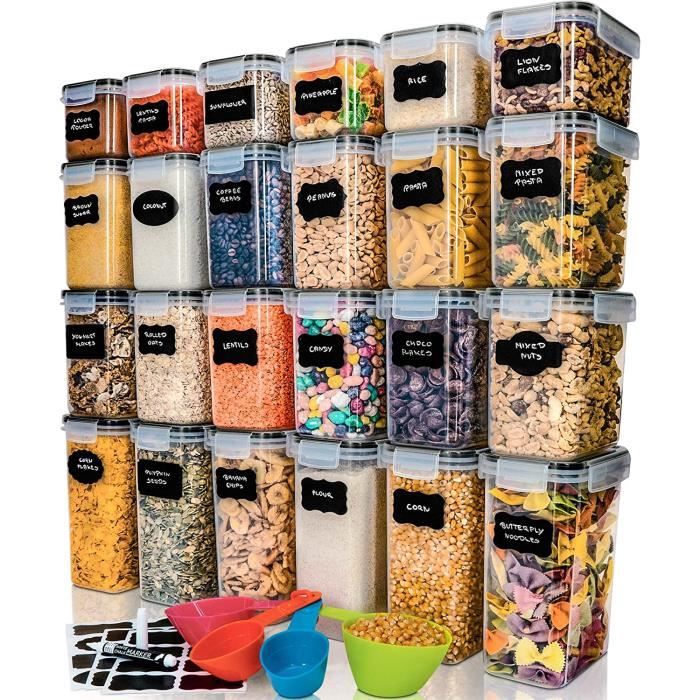 Boîtes De Conservation LESS Récipients De Stockage Des Aliments Avec Couvercles 10 Pcs PP A3 - Maison Boites Alimentaires Hermétiques 4 récipients à céréales Versez facilement les aliments : avec un trou dans le couvercle, vous pouvez verser les aliments facilement sans ouvrir le couvercle. Pour éviter que l'air ou l'eau ne pénètrent, gardez vos céréales sèches, à l'abri des mites, des fourmis et autres parasites, et gardez vos aliments frais plus... Récipients de Stockage hermétiques pour Aliments Cuisine Garde-Manger Organisation et Stockage... Fonctionnalité solide et gain de place : le plastique transparent permet de vérifier facilement combien de céréales ou de nourriture restante. Hermétique Sans BPA Lot De 6 Boîtes Alimentaires En Verre ERUIV En outre, notre récipient à céréales a un corps étroit qui nécessite moins d'espace et s'adaptera facilement à votre réfrigérateur, congélateur ou placard, vous permettant d'organiser la cuisine et de libérer de l'espace dans le garde-manger. Nos récipients hermétiques sont conçus avec des poignées ergonomiques confortables, vous pouvez tenir le récipient sans effort même s'il est plein. Pour améliorer les capacités d'étanchéité de ces récipients alimentaires en plastique, nous ajoutons le joint en silicone autour de l'ouverture du couvercle à rabat. Ce lot de 4 boîtes alimentaires en silicone souple offrent une conservation hermétique, un rangement malin et un design tendance.4 formats: 350 ml à 1200 ml. Emballage de qualité supérieure : votre ensemble complet de boîtes de rangement pour céréales comprend 4 grandes boîtes de rangement de céréales de qualité supérieure (4 L, 3,8 g), 16 étiquettes réutilisables gratuites et 1 marqueur pour une expérience parfaite de garde-manger.