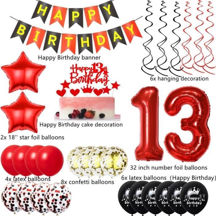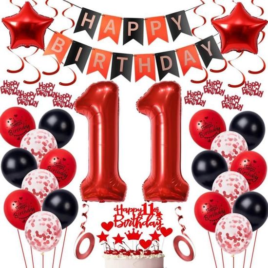 🎈Décoration 11 ans anniversaire rouge noir : 2 × 32'' ballons en plastique rouge 11, 1 set x bannière Joyeux anniversaire, 2 x 18'' ballons en plastique en forme d'étoile, 4 x 12'' ballons rouges, 6 x 12'' ballons noirs, 4 x 12'' ballons confettis rouges et noirs, 4 x 12'' ballons confettis or, 6 x tourbillons suspendus, 1 x ruban pour ballons, 1 set de toppers happy birthday pour gâteau. La couleur unique rend la fête plus belle et originale, distingue-toi du reste. Cela vaut donc la peine de faire la fête. Les ballons 11 ans sont fournis en différentes couleurs et constituent une décoration festive. Plus de 11 ans d'articles de fête et de décorations sur tuf-tu... Ballons 11 Ans Anniversaire Garçon, Decoration Anniversaire 11 Ans Enfants, Bannière Joyeux... Deco Anniversaire Squid Game Decoration Anniversaire 11 Ans Fille Garçon, Noir Et Argent Ballon Anniversaire 11 Ans Enfant Verre A Ricard Ballon 🎈Décoration parfaite pour un 11 ans anniversaire : décoration d'anniversaire cool en rouge et noir ! Bannière ballon rouge et noir Happy Birthday en mylar 🎈Matériel de haute qualité : les ballons en film et en latex sont adaptés à l'azote et à l'air, bien conservés et réutilisables. Grâce à une fête d'anniversaire unique pour les 11 ans, nos décorations d'anniversaire Rouge Noir ont rendu la nuit merveilleuse ! 🎈Satisfaction du client : fournir une expérience de satisfaction totale est notre principale priorité pour nos clients.