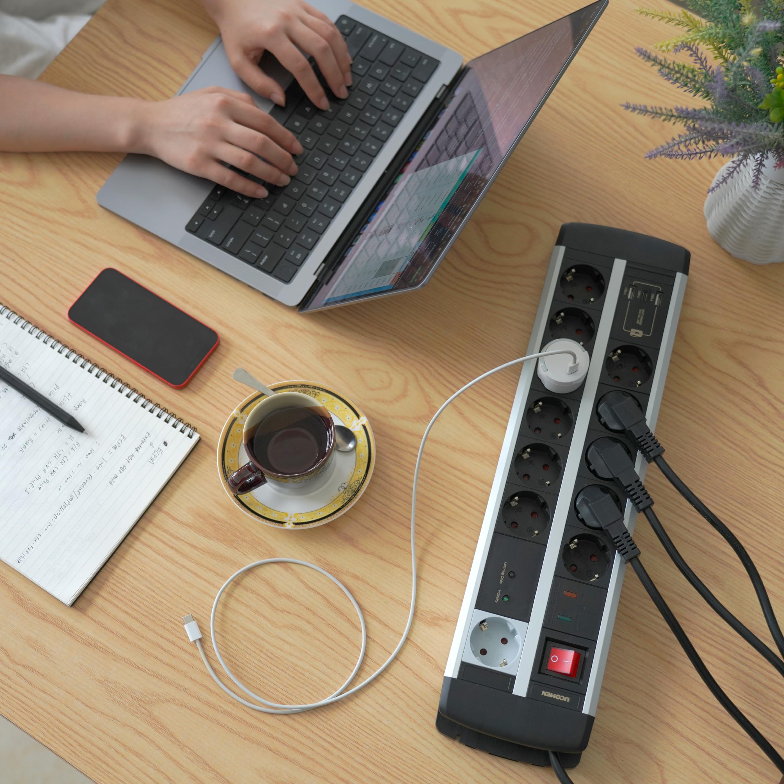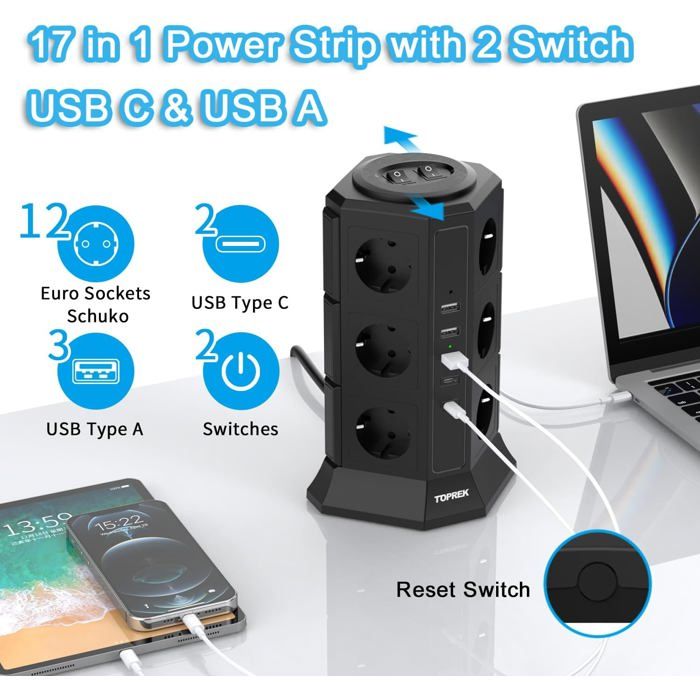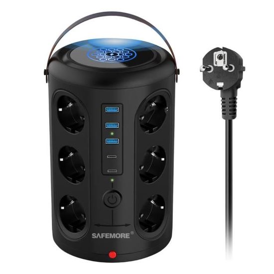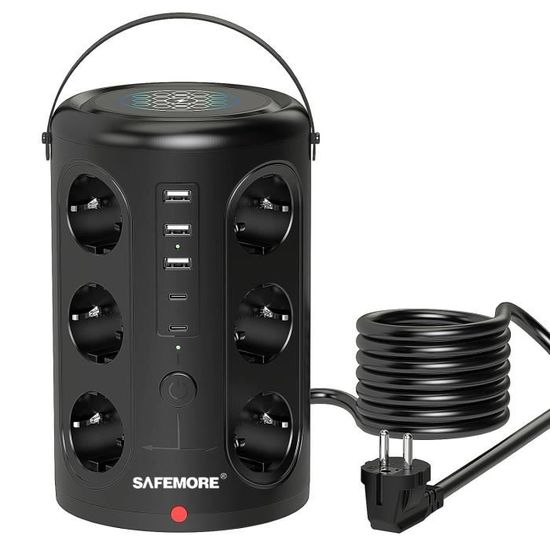 Protection contre les sur Fonctions de sécurité avancées : la protection contre les surcharges intégrée garantit la sécurité de vos appareils, tandis que la protection contre les surtensions les protège contre les surtensions et offre une protection constante pendant le fonctionnement continu. Il offre suffisamment de prises et des fonctionnalités avancées pour connecter tous vos périphériques et appareils informatiques. Pour les professionnels et les particuliers à la recherche de solutions pratiques, les multiprises offrent une manière simple de gérer vos appareils électriques. Avec des fonctionnalités avancées et des designs adaptés, elles garantissent sécurité et efficacité Multiprise 12 Prises avec 5 Ports USB avec Protection Contre Les Surtensions USB C Pd20W... Bloc Multiprise 12 Prises USB Ultiprise 12 Prises Avec USB C, Bloc Ultiprises Parafoudre Et Surtension Avec Interrupteur Multiprise Avec 2 Ports Spécialement conçu pour les bureaux d'ordinateur : conçu sur mesure pour les utilisateurs d'ordinateurs, cette multiprise est le compagnon idéal pour votre bureau, votre poste de travail ou votre configuration de jeu. 2024 Tour De Chargement Multi-prises - 12 Prises 2 USB 1 Type C Avec Cable De 2 Metres Le module de charge intelligent détecte le courant optimal pour chaque appareil, assurant ainsi une charge rapide, fiable et sûre. Avec ses 12 prises, cette multiprise offre suffisamment d'espace pour connecter votre ordinateur, moniteur, imprimante, haut-parleurs, disques durs externes et autres accessoires. Contrôle flexible : équipé de 2 interrupteurs séparés, cette multiprise vous permet de contrôler indépendamment 6 prises l'une de l'autre.