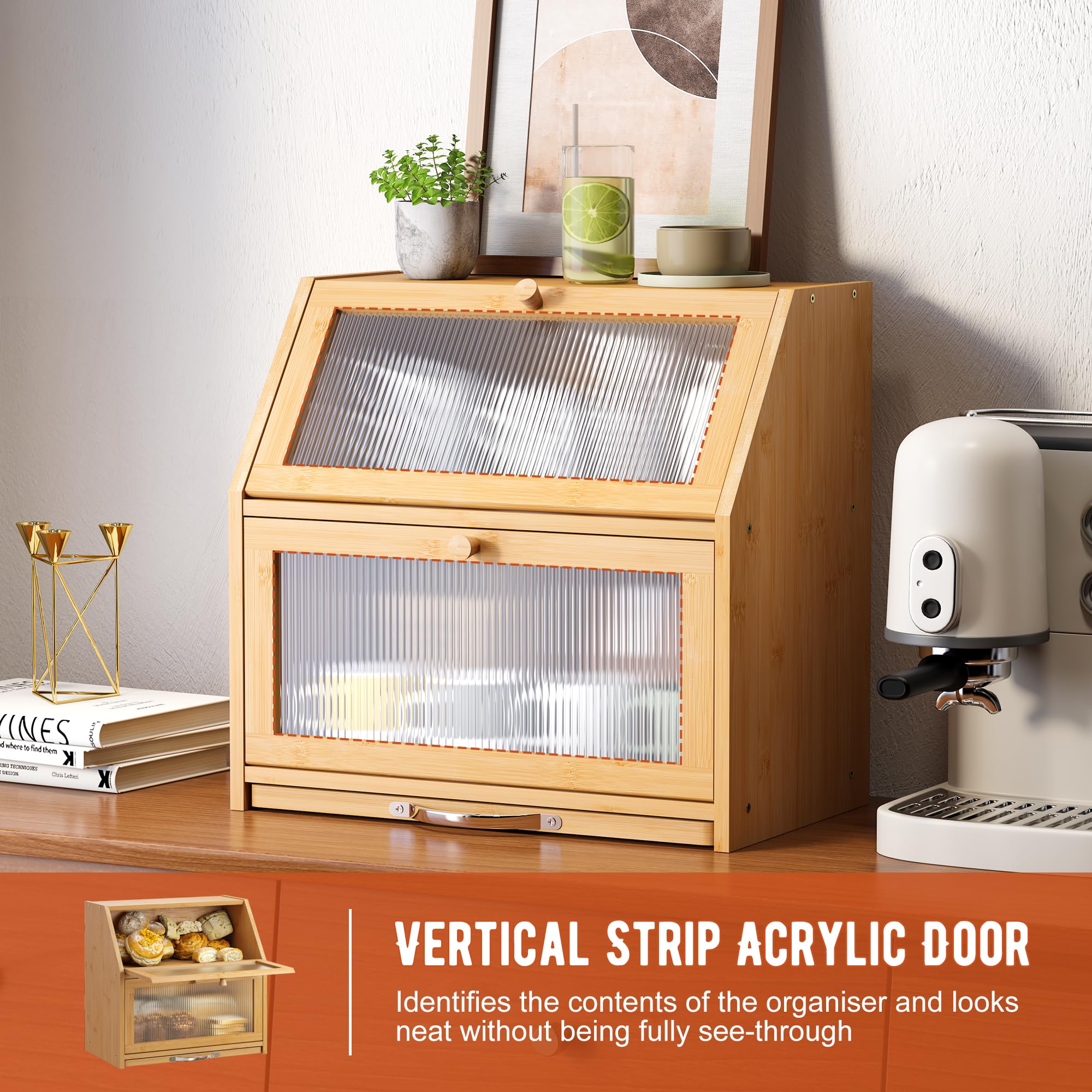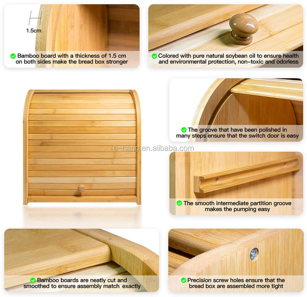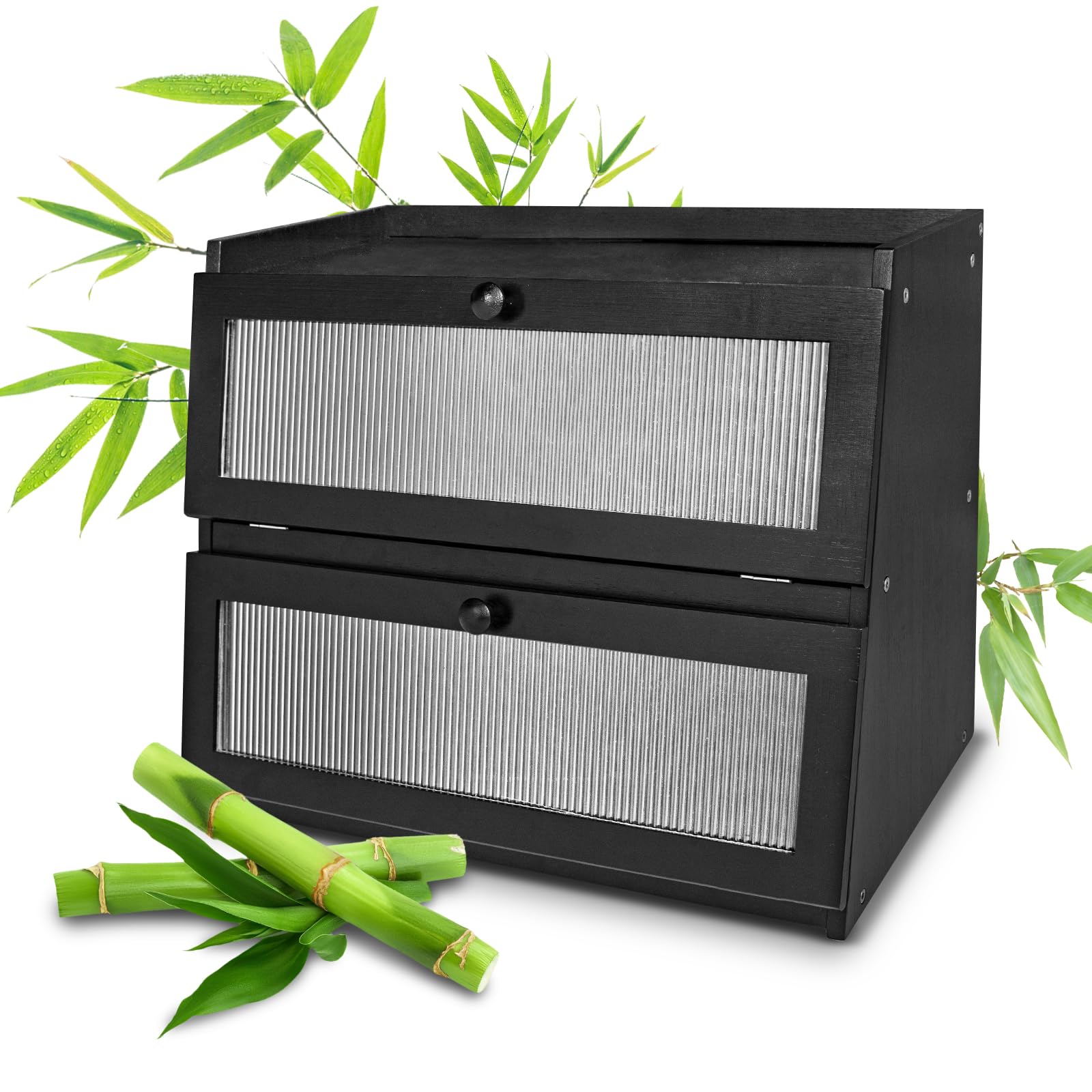 Double couche grande capacité : offre plus d'espace de stockage pour stocker différents types de pain ou de produits de boulangerie. Bambou naturel : Fabriqué en bambou naturel de haute qualité, solide et sans odeur Grande capacité : conçu avec un double compartiment, la capacité est assez grande pour contenir beaucoup plus de pain qu'un seul compartiment. Le panneau arrière est conçu avec 10 trous, ce qui assure une meilleure circulation de l'air et maintient votre pain frais plus longtemps. Boîte à Pain en Bambou à Double Couche Ohuhu Boîte à Pain En Bambou Pour Comptoir De Cuisine, Rangement à Pain Assemblage facile : le colis est livré partiellement assemblé. Il suffit de configurer les 4 autres panneaux, c'est super facile et gain de temps. La porte avant et le panneau inférieur sont fixés, les patins antidérapants et la poignée de porte sont assemblés. Avec les pieds, le panneau inférieur reste à une certaine distance du comptoir, il aide à garder la boîte loin de l'eau et de l'humidité. Équipé de coussinets antidérapants : la boîte de rangement à pain est équipée de 4 patins antidérapants, ce qui l'empêche de bouger, de sorte qu'elle peut rester stable. Boite A Pain Noir En Bambou, Boîtes À Pain Simple Couche Avec Fenêtre... 【Bambou 100 % naturel】La boîte à pain est fabriquée en bambou 100 % naturel, elle est naturelle et saine.