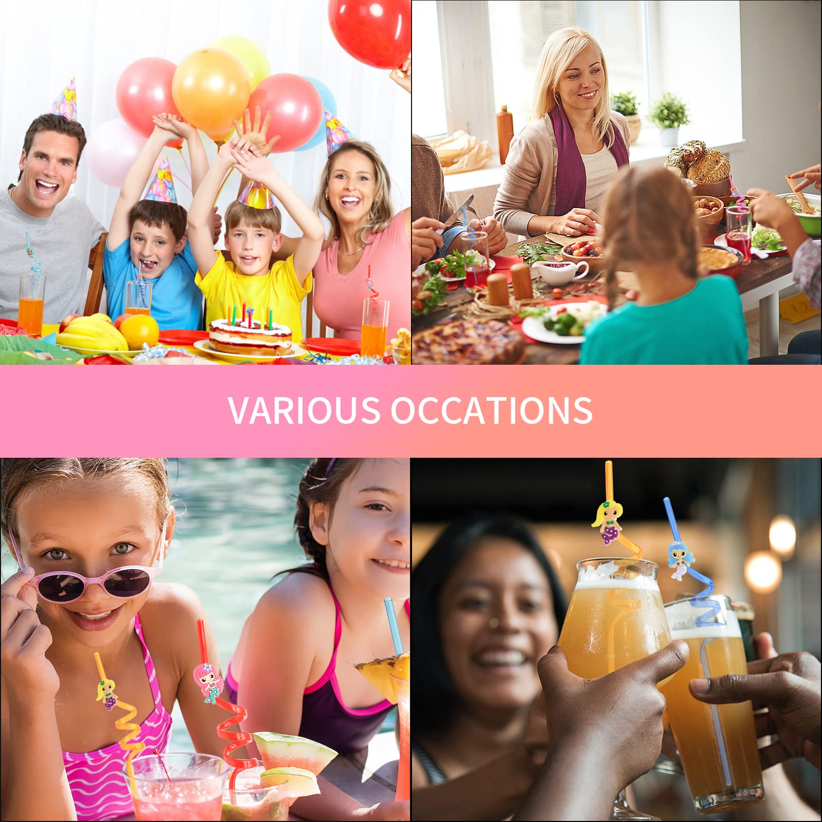 Lot De 60 Pailles Réutilisables, Avec Nœuds Bouclés, Pailles