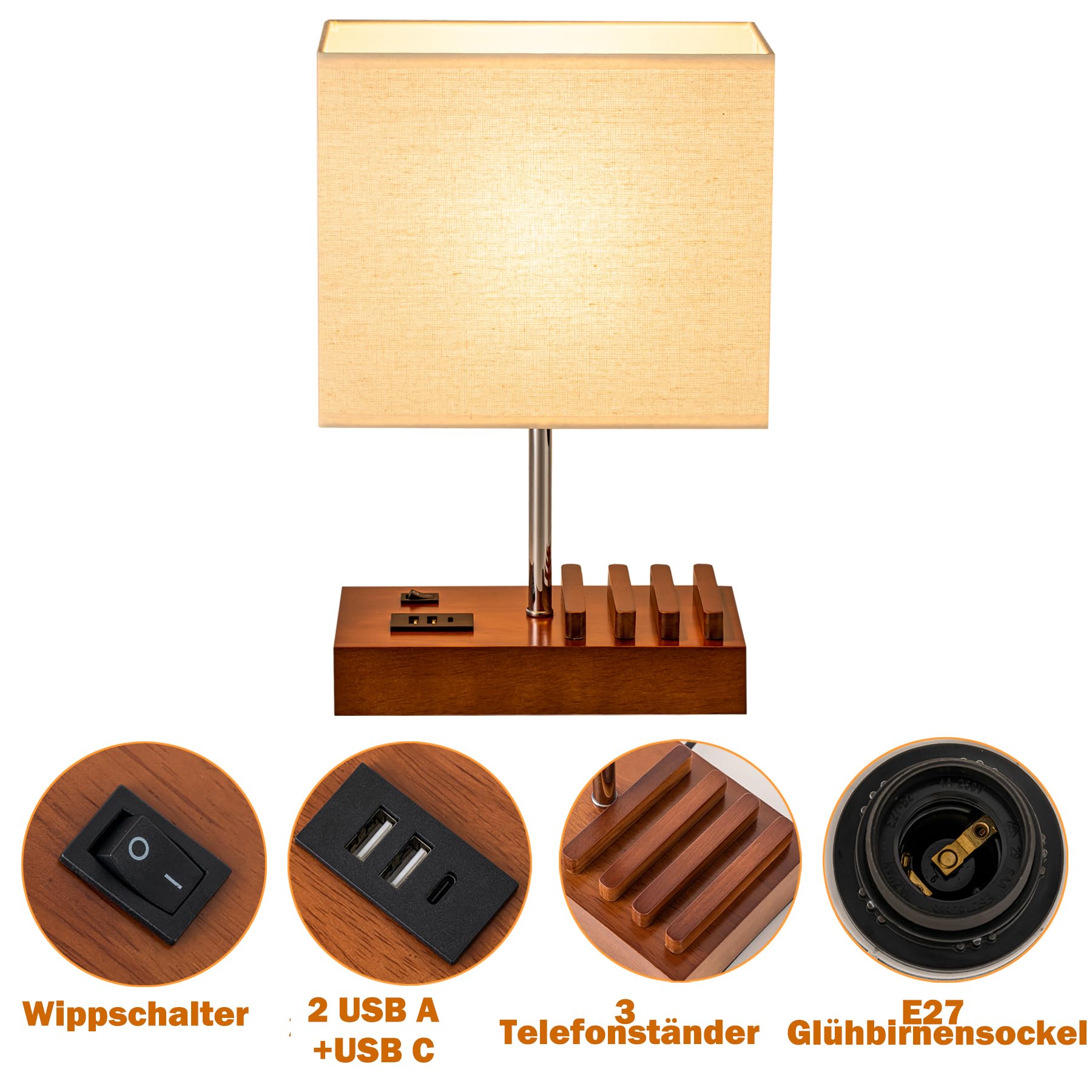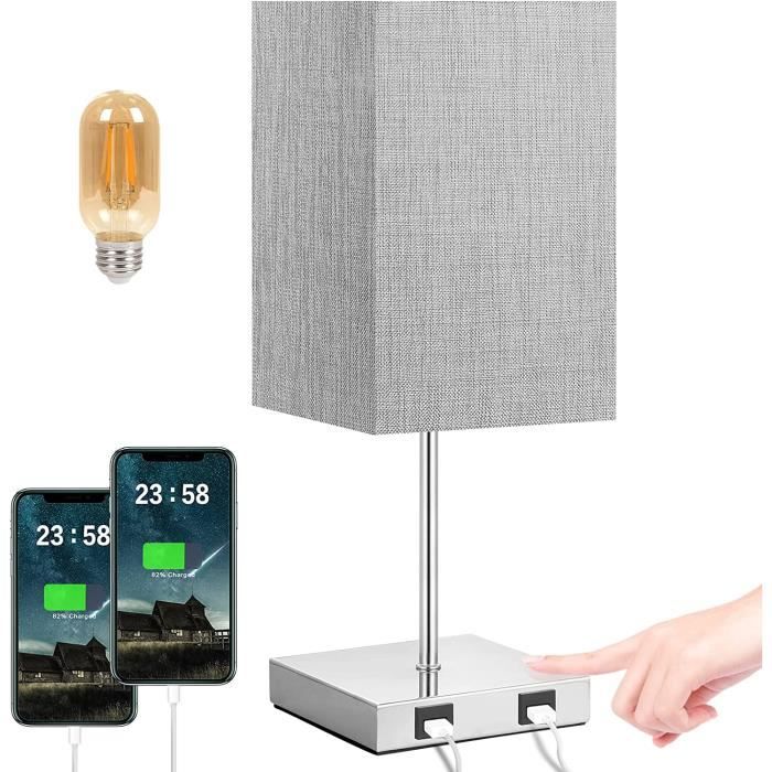 60 W Source lumineuse : Culot E26 (ampoule non incluse) Cordon d'alimentation CA : 63 pouces Type de prise : Prise UL Type d'interrupteur : Interrupteur à bascule sur la base et le cordon Base de la lampe : Bois naturel Abat jour : Tissu en lin crème Dimensions (L/l/H) : 9,92 x 4,8 x 17,13 pouces / 25,2 x 12 x 43,5 cm Emballage inclus : 1 2 prises pour petits appareils comme les ordinateurs portables, les imprimantes, les humidificateurs, etc. Abat-jour en lin crème au motif élégant pour une décoration remarquable : cette lampe de chevet moderne est dotée d'un abat-jour en lin simple et tendance, qui crée une atmosphère réconfortante pour protéger vos yeux pendant la lecture ou le travail La fonction de charge est disponible, que la lampe soit allumée ou éteinte. C'est un cadeau idéal pour votre famille ou vos amis pour un anniversaire, Noël, Thanksgiving, un anniversaire de mariage ou toute autre occasion. Ils seront ravis de recevoir cette lampe unique et pratique. Cette lampe de bureau est livrée dans un ensemble complet comprenant l'abat jour et l'anneau de fixation, très simple à installer sans outils supplémentaires. Glighone 2Pcs Lampe de Chevet USB Rechargeable, Lampe de Table Moderne DESIGN MODERNE AVEC ABAT-JOUR EN LIN POUR UNE DÉCORATION MAGNIFIQUE : Cette lampe de bureau moderne est dotée d'un abat-jour en lin simple et tendance, créant une atmosphère apaisante pour protéger vos yeux pendant la lecture ou le travail. Elle peut embellir instantanément votre bureau, votre bureau, votre salon, votre chambre ou votre chambre d'amis. 5 V / 3 A, 2 prises CA Puissance nominale : Total Max. Table De Chevet Connectée Lampe De Table Dreamholder - 3 Ports USB 3 Supports Téléphone | Base Bois Abat-jour Lin Lampe De Table Ports USB Lampe de Chevet Tactile avec 2 Ports de Charge USB, Lampe de Table pour... Base en bois sécurisée avec 3 supports pour téléphone et iPad : cette lampe de table est fabriquée avec une base en bois massif, sûre et anti-rampante, ajoutant une sensation de nature ; trois emplacements pour téléphone peuvent contenir vos téléphones, liseuses ou autres appareils pendant le chargement, gardant votre bureau, table de chevet, table d'appoint propre et soignée C'est également un compagnon idéal pour travailler, lire ou jouer à des jeux électroniques., Étapes d'installation : 1., Dévissez l'anneau de fixation du support de lampe., 2., Placez l'abat jour sur le support de lampe., 3., Revissez la bague de fixation pour stabiliser l'abat jour., 4., Installez l'ampoule E26., (Ampoule non incluse) Spécifications : 3 ports USB Sortie : Total Max.