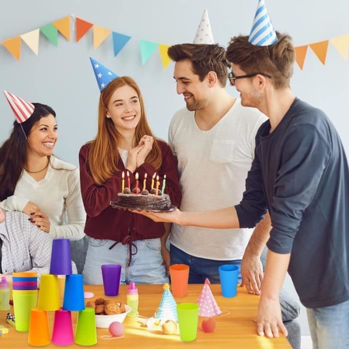 Passe au micro ondes RisingFF Ensemble de gobelets en plastique avec paille - Idéal Idéal pour les voyages, le camping et les barbecues en plein air. Multi-usage : en plus d'être utilisé comme accessoire de salle de bain, comme gobelets, dentifrice et support de brosse à dents, il peut être utilisé comme gobelet froid pour l'eau, le froid, le lait, le jus, le soda, etc. Le bord extérieur de la tasse est parfaitement... Gobelets 250ml Gobelets En Plastique Réutilisables - Lot De 36 KAHEIGN Lot de 36 gobelets réutilisables en plastique durable de 250 ml pour enfants, pour la cuisine, les fêtes, les pique-niques, les barbecues...