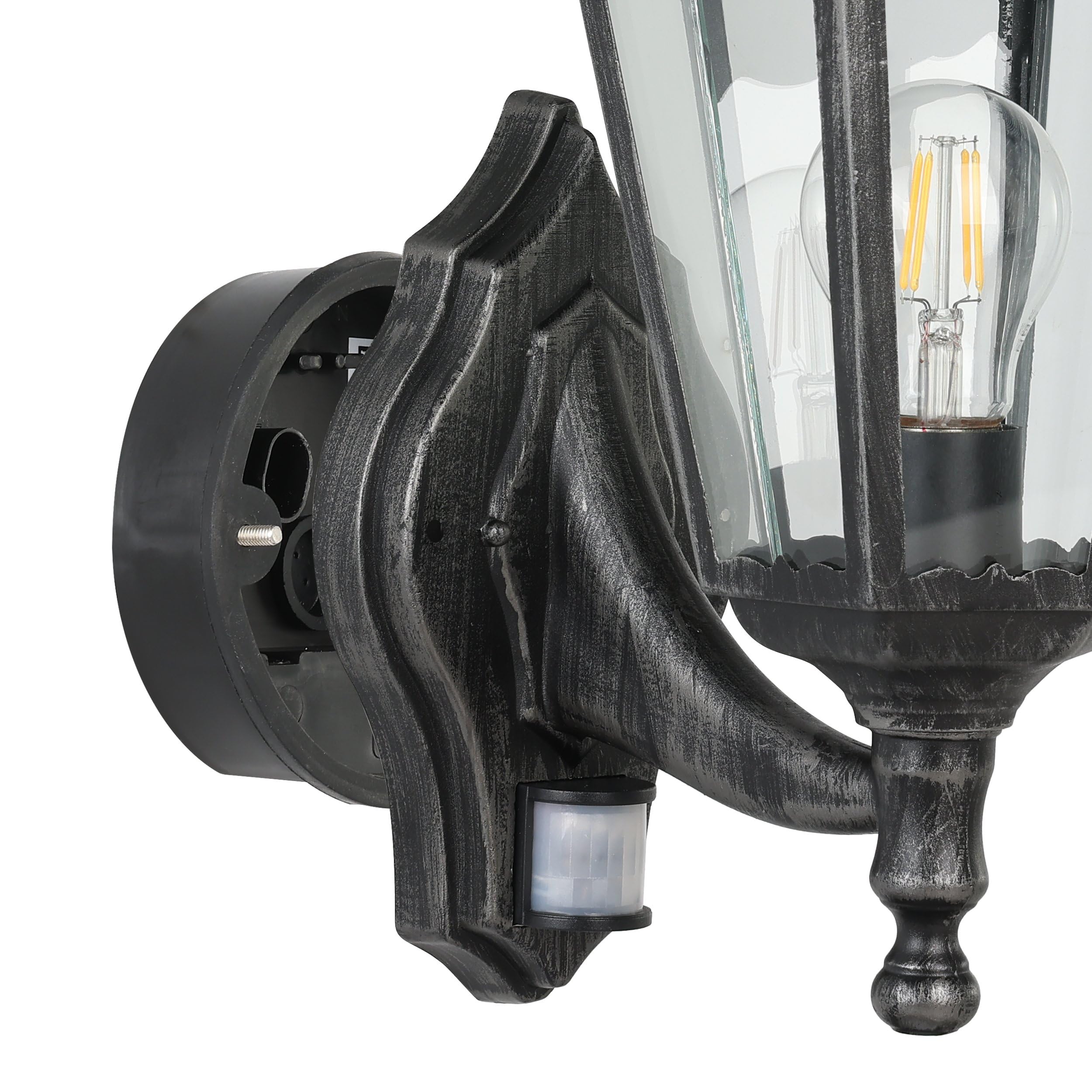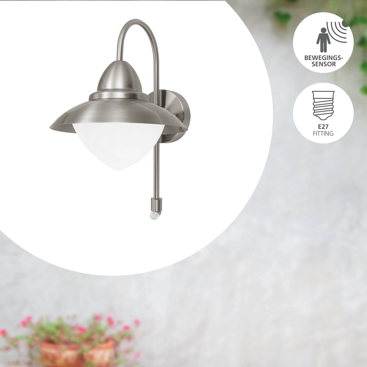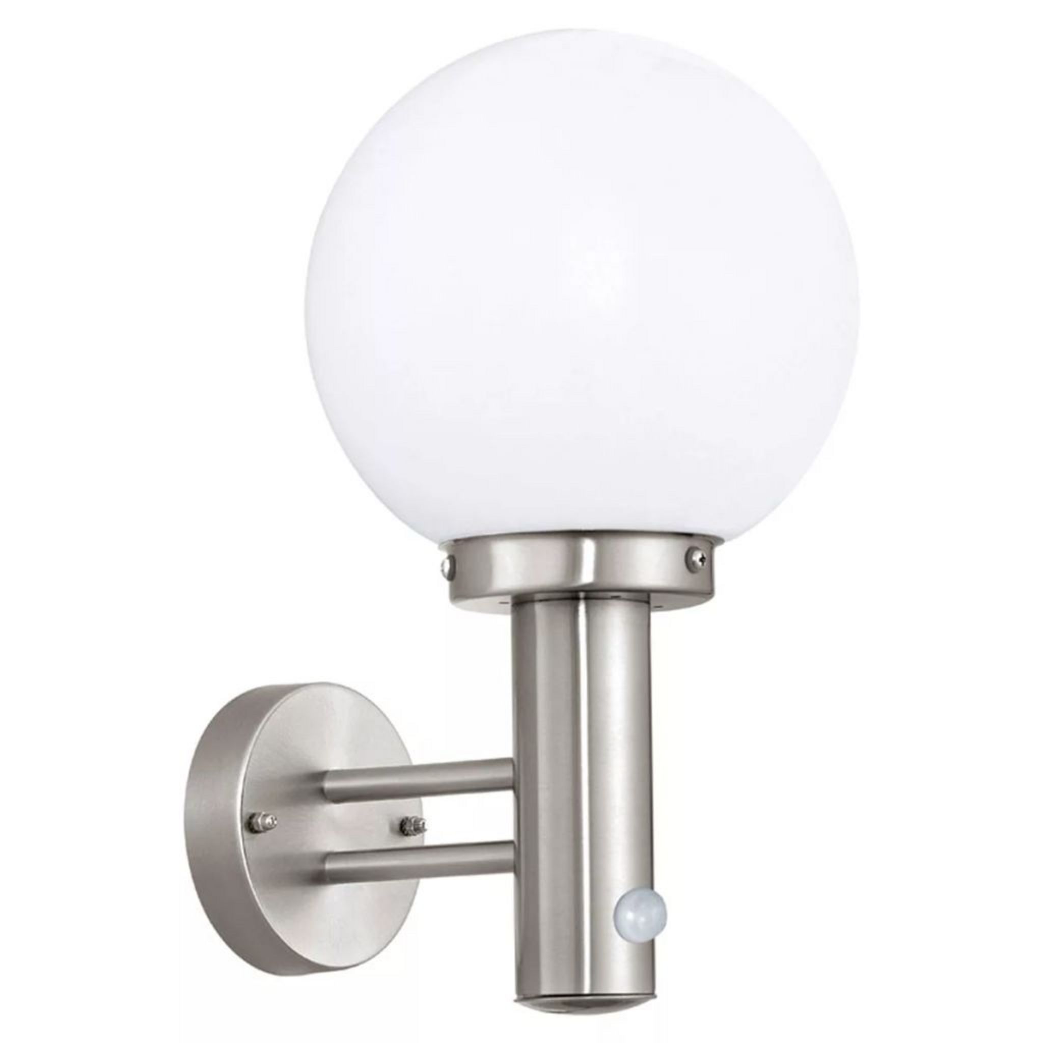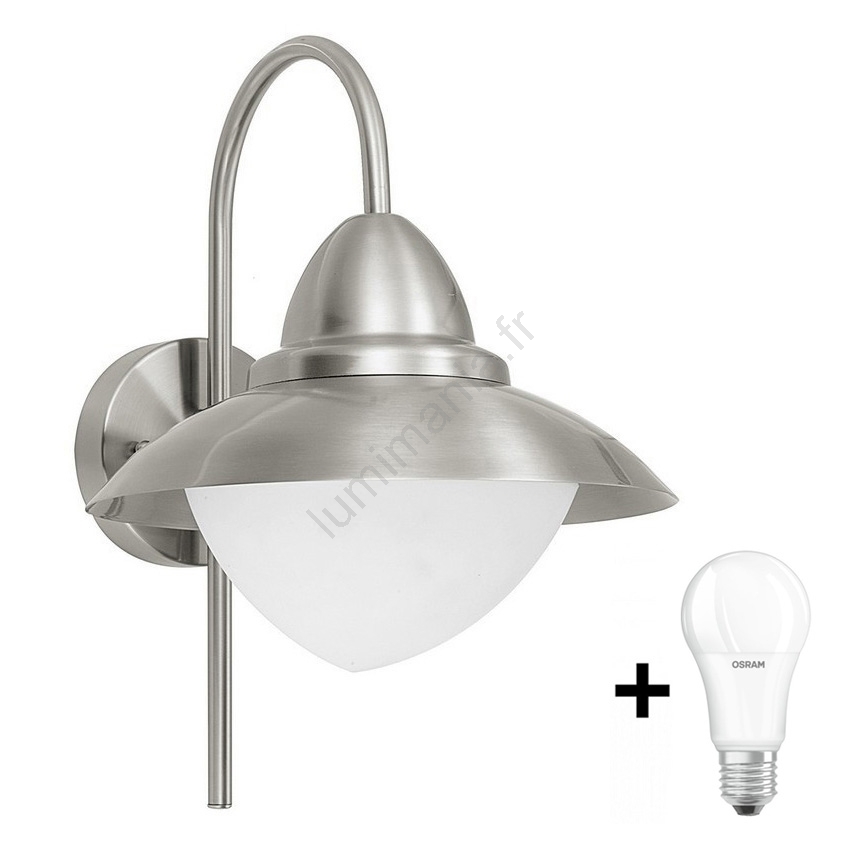 L'ampoule n'est pas incluse à la livraison; Convient à toute ampoule équipée d'un culot E27, puissance maximale par douille de 60 W; Dimensions : Hauteur : 37,5 cm, Diamètre : 27,5 cm, Portée : 32,5 cm Description L'applique murale extérieure SIDNEY d'Eglo est un matériau d'acier inoxydable couplé à une conception de tête d'éclairage incurvée harmonieuse, produisant un éclairage agréable sans éblouissement sur l'ensemble de l'espace environnant, grâce à son couvercle en verre opale mat bien pensé. Portant une protection IP44 robuste contre les éclaboussures... NBHANYUAN Lighting® Applique Murale Exterieure,LED Lampe Extérieure Acier Inoxydable SUS304 Argent,Luminaire Exterieure pour Porche Patio 3000K Blanc Chaud 1000LM 9W 220-240V IP44 Le boîtier du projecteur est fabriqué en acier inoxydable robuste et de haute qualité L'acier inoxydable est synonyme de durabilité, protège contre la rouille et donne au luminaire un aspect noble Applique Extérieure Avec Détecteur Eglo Lampe Murale Extérieur Sidney, Lnaire Extérieur à Flamme Luminaire Exterieur Avec Detecteur De Mouvement Cette lampe extérieure étanche est protégée contre les éclaboussures (IP44) Cela permet une utilisation sûre dans les espaces extérieurs tels que le jardin, la terrasse, le garage, le balcon, l'abri de jardin, les chemins, les allées ou les entréesLe design moderne et intemporel de cette lampe murale extérieure LED s'intègre avec... Cette applique murale de la série SIDNEY de la collection extérieure est fabriquée en acier inoxydable et en verre satiné blanc; Elle dispose d'un capteur, est conforme à l'indice de protection IP44 et fonctionne avec une ampoules E27., Confort, sûreté et sécurité : la lumière s'allume sans qu'il soit nécessaire d'actionner un interrupteur et vous avez les mains libres pour porter vos courses Les endroits peu visibles sont éclairés et les invités indésirables sont repoussés Le détecteur de mouvement a un angle de détection de 120°, sa portée est de 6 m Le design moderne et intemporel de cette lampe murale extérieure LED s'intègre avec style dans votre espace extérieur et crée une atmosphère accueillante