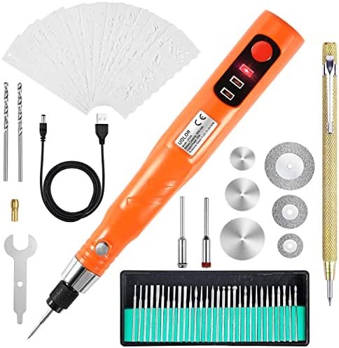 Stylo Graveur Gravion VBESTLIFE Stylo De Gravure Sans Fil Stylo De Gravure électrique Mini Meuleuse Cykelith Kit de stylo de gravure rechargeable sans fil avec 33 embouts, 10 pochoirs, mini machines de gravure électrique à faire soi-même, outil rotatif pour sculpter des bijoux, pierre, bois, verre, métal, plastique Moteur réglable à 3 vitesses : que vous soyez débutant dans la gravure ou un professionnel chevronné, notre stylo de gravure personnalisateur, son design léger et ergonomique met la précision et le contrôle entre vos mains. Convient à divers matériaux tels que le métal, le bois, la céramique, le verre, le cuir et le plastique. Que ce soit pour bricoler avec vos enfants ou pour... Rechargeable et durable : la machine de gravure Cykelith offre la commodité de la recharge USB, offrant jusqu'à 90 minutes d'utilisation sans fil sur une charge complète. Chargez-le n'importe où avec n'importe quel appareil USB et gravez à tout moment, n'importe où. Pour plus d’info sur les retours (exceptions, frais de... Cadeau parfait pour les amateurs de bricolage : que ce soit pour Noël, un anniversaire ou toute autre occasion spéciale, le stylo de gravure professionnel Cykelith est un cadeau attentionné et pratique pour les créateurs de tous âges. LaBlanc - Kit d'outils de gravure électrique rechargeable par USB La variété d'embouts et de modèles de gravure est votre meilleur choix Protection intelligente de mise hors tension : le stylo de gravure professionnel dispose d'un circuit de sécurité qui coupe automatiquement l'alimentation après cinq secondes de blocage, assurant que votre outil de gravure reste sûr et fiable pendant l'utilisation Facile à utiliser : le stylo graveur Cykelith dispose d'un design ergonomique pour une prise en main confortable, minimisant la fatigue de la main, avec 3 réglages de vitesse réglables (10 000 à 21 000 tr/min), il s'adapte à divers matériaux tels que le métal, le plastique, le verre, les bijoux, la céramique, le bois et le cuir Attention : Vous cherchez un outil polyvalent pour vos projets de gravure, mais vous ne voulez pas encombrer votre espace de travail avec des machines Ces embouts sont suffisants pour la gravure, la sculpture, le ponçage, le polissage, la gravure, le routage, le meulage, le perçage et la coupe.