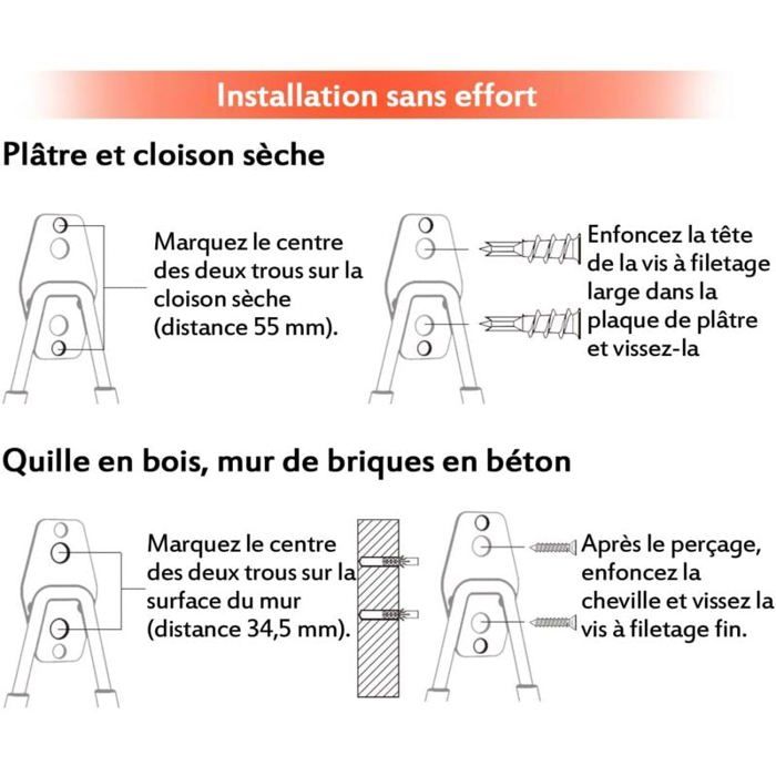 Matériau de qualité : Les crochets de garage sont fabriqués en matériau robuste de haute qualité, fiable et peuvent être utilisés pendant une plus longue période. Caractéristiques du produit : Matériau principal : métal., Couleur principale : noir. Surface lisse : nos cintres pour échelle sont résistants à la rouille avec une finition revêtue de vinyle. Crochets muraux de garage, noirs, lot de 12, support à vélos Caractéristiques : Grande quantité : 12 crochets de garage sont en grande quantité, répondent facilement à vos besoins quotidiens, vous pouvez également partager vos amis, votre famille, vos camarades de classe et vos collègues. Nous serons heureux de vous servir. Crochet de rangement pour vélo : le crochet de rangement pour vélo est fabriqué en acier au carbone de qualité supérieure avec une dureté élevée, il n'est pas... Les crochets d'échelle peuvent supporter jusqu'à 29,5 kg. Matériaux de qualité : nos cintres de garage sont fabriqués en acier épais et massif et permettent des années d'utilisation sans aucune flexion ou déformation. Si vous avez des questions sur nos produits, veuillez nous contacter. Large gamme d'utilisations : nos crochets de garage sont parfaits pour accrocher une chaise pliante, une échelle, un vélo, des outils de jardin, un tuyau, un cordon, une brouette, des outils électriques, et bien plus encore. Ces crochets muraux pour vélos sont très résistants à la pression et à l'oxydation, conservant ainsi leur performance même dans des environnements humides.Installation facile : Ces crochets de garage pour suspendre des objets lourds sont fournis avec des vis de fixation. Installez-les simplement là où vous en avez besoin Crochet Velo Pas Cher Lot De 12 Crochets De Rangement Pour Vélo - Pour Garage, Mur, Plafond Crochets Muraux Attention : Mesure manuelle, légère marge d'erreur.
