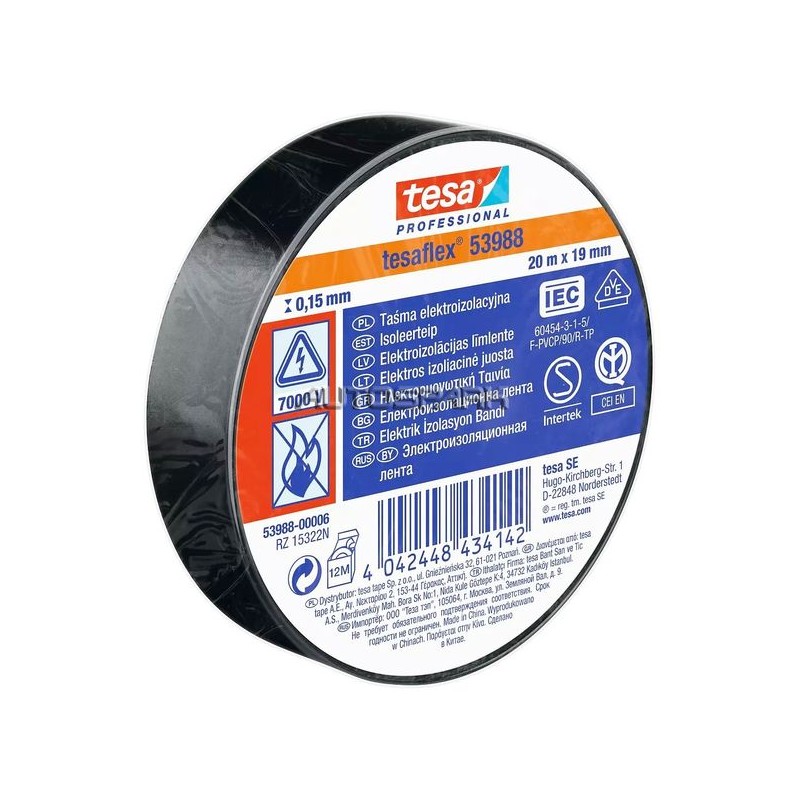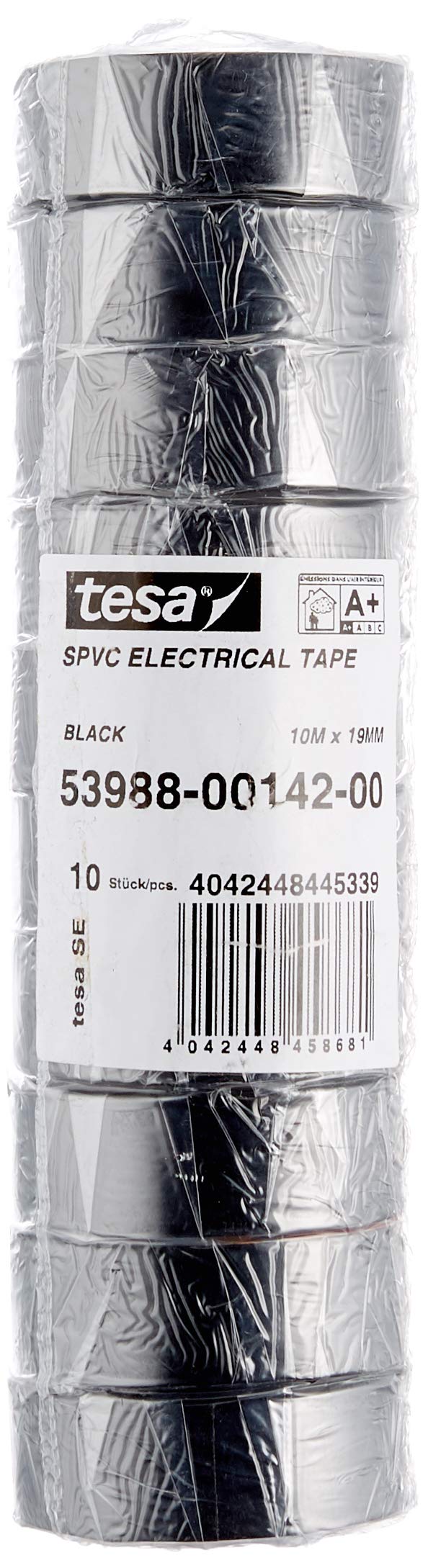 Ruban adhésif isolant avec support en PVC et masse adhésive en caoutchouc naturel. Résistance à la traction 32N / cm, épaisseur totale 130 microns. Hautement résistant à une température continue de 90° C et peut également être appliqué à basses températures. 19mm X 20m, Tesa 53988 Ruban isolant électrique en PVC, adhésif isolant imperméable et ignifuge, ruban à courant fort, noir Tesaflex 53988 Ruban Isolant électrique En PVC IEC, 19mmx10m, Noir Disponible en plusieurs couleurs, il peut servir de ruban adhésif de marquage. Il est certifié conforme à toutes les normes en vigueur et résiste à des températures de 90 °C Pour l'isolation, le cinturaggio, la signalisation, le renfort, l'étanchéité et la protection de câbles et tubes