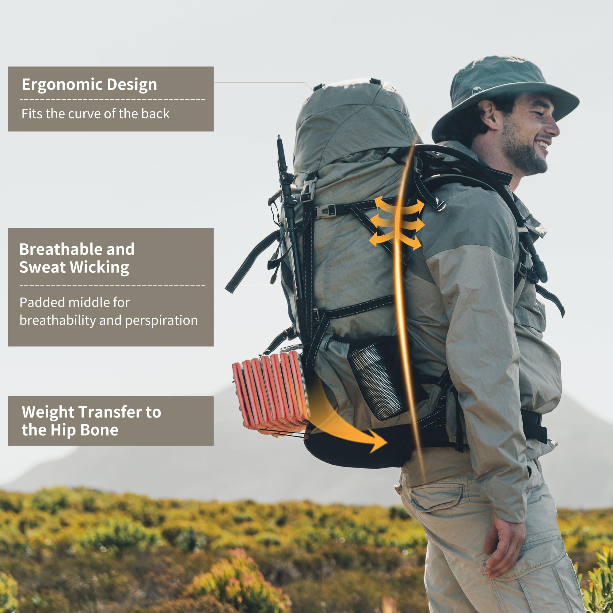 En plus de la capacité de conception, le haut du sac à dos peut également avoir 5L d'espace supplémentaire, qui peut stocker des vêtements, de la vaisselle ou d'autres effets personnels. Tissu nylon imperméable : le sac à dos est fabriqué en tissu nylon indéchirable, imperméable et résistant à l'usure, qui se raye sans laisser de traces. Centre du dos rembourré pour la respirabilité. Natureifa-Sac à dos de voyage léger avec cadre en alliage, housse étanche, camping, randonnée, trekking, 70 5L 70+5L grande capacité : la capacité du sac à dos de randonnée est de 70L, avec une forte capacité de chargement à l'extérieur, qui peut facilement stocker les besoins de chaque voyage. Suspension externe du sac à dos : plusieurs sangles à l'extérieur du sac à dos avec des fixations permettent de suspendre des bâtons d'escalade, des sacs de couchage, des matelas et d'autres objets. Sac À Dos De Randonnée - Sportif Léger Pliable Imperméable Ultraléger... Bretelles réglables larges et épaisses pour un meilleur ajustement. La poche de hanche peut être utilisée pour placer des projecteurs, des câbles de données, etc. Le sac à dos est construit avec deux bandes d'aluminium aéronautique qui non seulement réduisent son poids, mais renforcent aussi sa capacité de charge. La ceinture sternale soulage les épaules et empêche le sac à dos de glisser. Lancez-vous dans vos aventures les plus ambitieuses avec le sac à dos NATUREHIKE 70L, méticuleusement conçu pour les randonnées de plusieurs jours, le trekking et les expéditions de randonnée Naturehike Sac à Dos De Randonnée 70L Hommes Femmes Sac à Dos De Trekking Ultraléger Étanche Grand Sac à Dos De Voyage Avec Protection Contre La Pluie Pour L'extérieur, L'alpinisme,Le Camping (Noir Le fond du sac à dos contient une couverture imperméable pour mieux protéger le sac à dos de la pluie.
