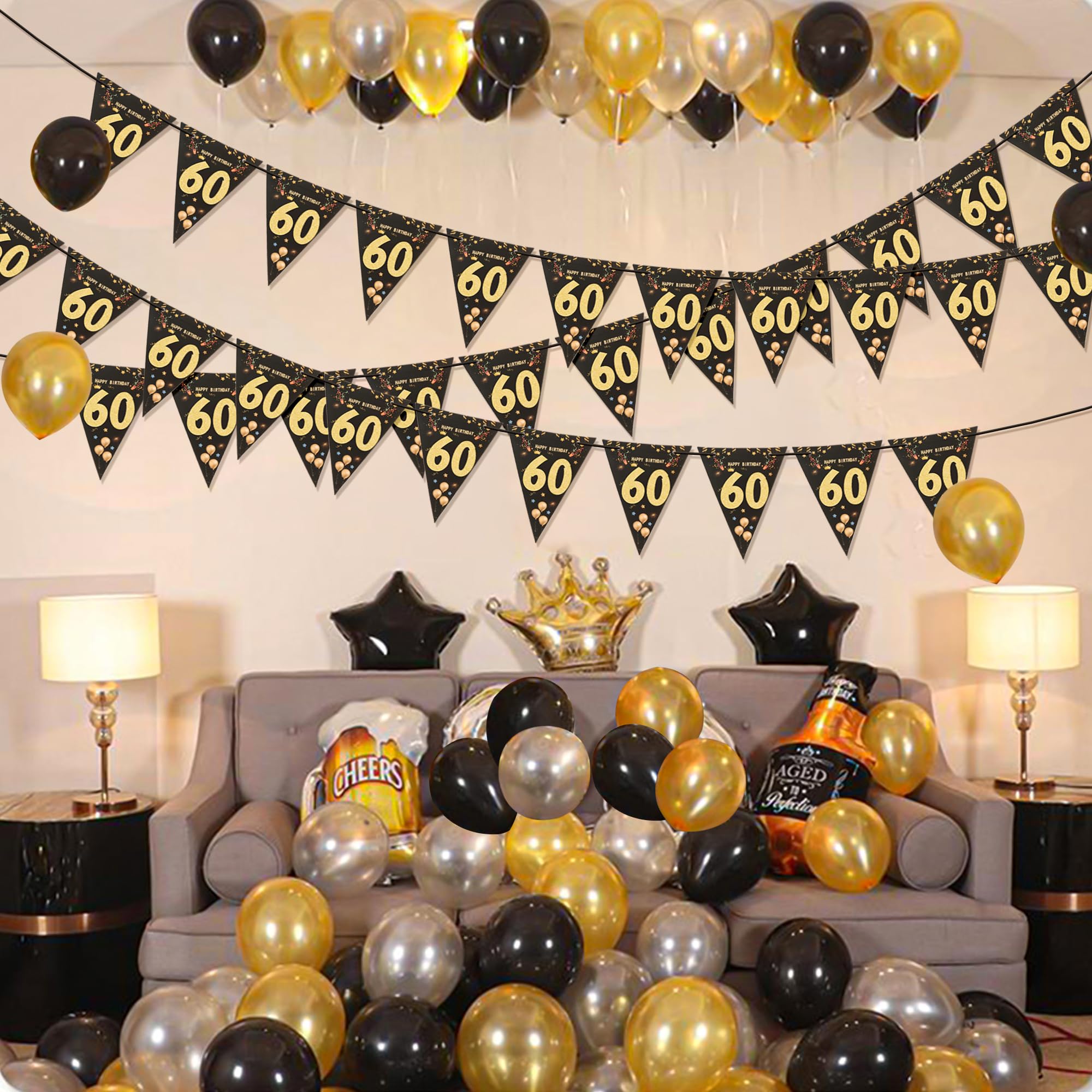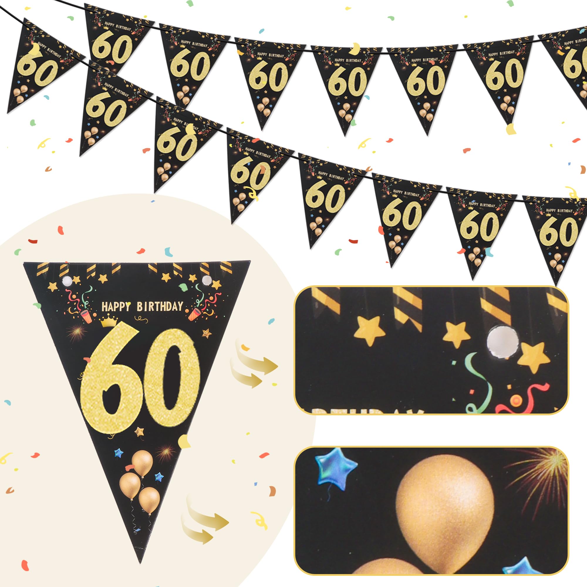 Guirlande de fanions pour 60e anniversaire - Noir et doré - Guirlande décorative en tissu - Bannière 60e anniversaire - Guirlande à suspendre - Décoration de fête d'anniversaire pour hommes et femmes Un 60e anniversaire chic en noir, argent et doré - My Fair Party La bannière est fabriquée en matériau de qualité résistant aux intempéries, ce qui peut supporter une utilisation à long terme. Conçu avec un grand « 60 » doré, différents styles de fanions et de cercles, simple mais élégant. Taille appropriée Anniversaires : Cette guirande à fanions 60 ans mesure 3.7 mètres de long. Elles se compose de 11 fanions en papier blanc avec des rayures dorées effet paillettes. Apportez une touche festive à votre décoration d'anniversaire avec cette guirlande 60... Un large choix est disponible en ligne et en magasin. Des chaussures aux vêtements, des tenues de sport aux accessoires. Guirlande De Fanions Pour 60E Anniversaire - Noir Et Doré - Guirlande