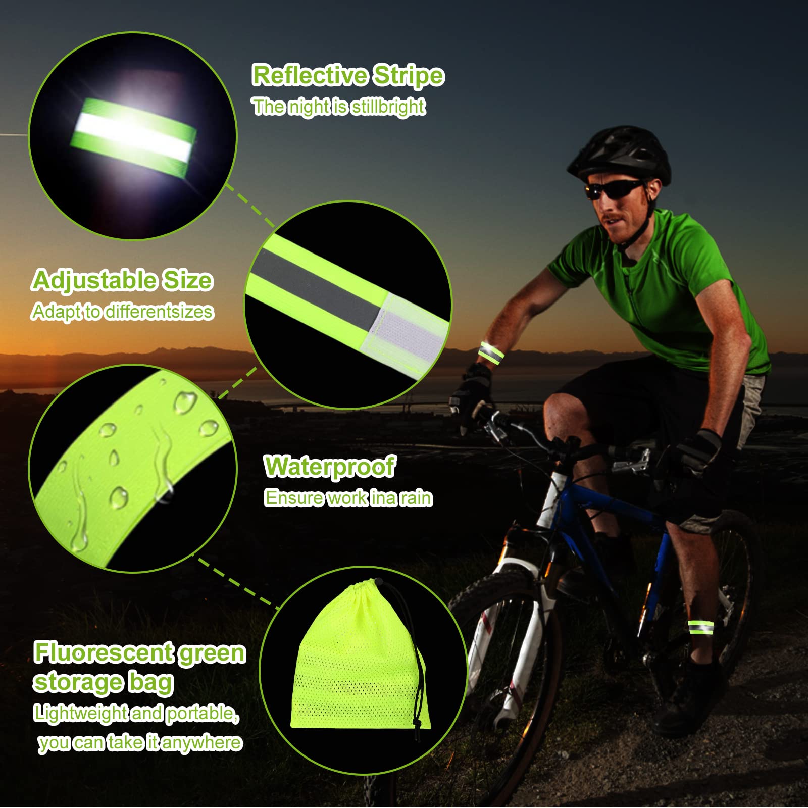 - Hautement réfléchissant et réglable individuellement. - Convient aux petits et aux grands. et obtenir le meilleur choix pour répondre à vos besoins Large application : la bande réfléchissante est une aide pratique pour la course, la promenade du chien, le cyclisme, l'escalade, la randonnée, le jogging, la course, la randonnée, le cyclisme, l'exploration, la patrouille ou d'autres activités de plein air, en portant le costume, vous êtes facilement reconnu dans l'obscurité. Caractéristiques : - Parfait pour les coureurs, les randonneurs, les cyclistes et toute autre personne qui a besoin d'une meilleure visibilité. Contenu : 4 bandes réfléchissantes. SHO attelle de jambe de chien réfléchissante Genouillères élastiques... Améliore la sécurité : la bande réfléchissante peut être portée ou attachée sur les poignets ou les chevilles des gens pour rappeler aux autres dans l'obscurité, l'effet réfléchissant évident peut montrer efficacement votre position et les aider à se préparer à l'avance. 1 sac de rangement vert. Taille : Bande réfléchissante : 35 x 4 cm (L x l). Effet pailleté et haute visibilité : la bande réfléchissante est fabriquée en tissu vert fluo fluo, elle peut être clairement identifiée par des personnes de différentes positions en raison de la réflectivité et de la visibilité à 360 degrés, l'effet fort rend la bande peut être utilisée dans la plupart des conditions météorologiques, telles que elle est adaptée à la pluie, au brouillard et à l'obscurité, de jour comme de nuit Bandes de coulée haute visibilité sur poignet,bras,rinçage des jambes pour la marche de nuit Lot De 4 Brassards Réfléchissants Pour Poignet, Bras Caractéristiques : Couleur : vert.