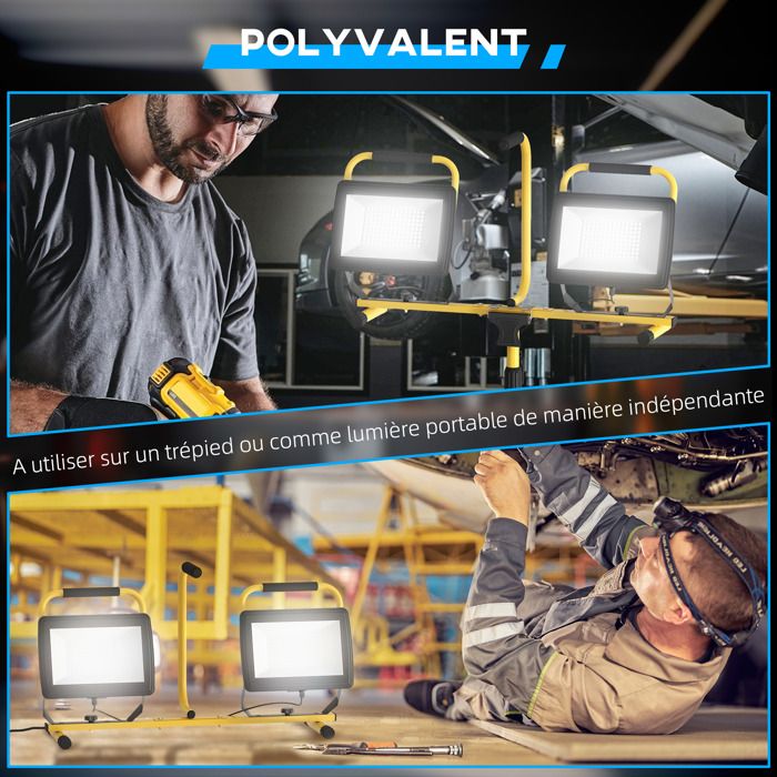 Vous pouvez également acheter un adaptateur de prise 240 V pour une utilisation courante. Description du produit choen focus sur la lumière menée de travail de site, particulièrement concevoir et produire la lumière de travail menée à 360° avec de haute qualité. Projecteur Led Sur Trépied 2 Pièces 100W Projecteur Chantier 6500K Avec Trépied Rotatif à 360 ° IP65 Étanche Projecteur D'Extérieur Atelier Projecteur Chantier Led Le plus grand avantage de la lumière de travail de site menée à 360° est l'éclairage omnidirectionnel. Pas besoin de changer la position de la lampe, la lampe de travail peut égayer toutes les directions. Lampe chantier LED Mât d'éclairage 23 700 lm - BRENNENSTUHL Nous avons une puissance de 36W à 150W. KS Tools - Projecteur portable sur trépied - Projecteur de chantier 10... Sécurité : approuvé CE, prise certifiée avec terre. Sans danger pour le corps. 【Application】 : prise 110 V pour une utilisation industrielle. Heilmetz Projecteur Chantier LED 50W, 700LM Projecteur de Chantier... HBM Lampe de chantier LED 2 x 150 W - 2 x 15 000 lumens avec trépied - 10596 Trépied, câble : trépied extensible, la hauteur la plus haute de la lampe peut atteindre 170,2 cm ; câble de 5 m 【Haute luminosité et plusieurs façons d'utilisation】 : 12 000 lumens avec couvercle laiteux, remplace les lampes de travail traditionnelles de 600 W ; l'emballage d'origine comprend un trépied, mais vous pouvez enlever le trépied pour mettre la lampe sur l'établi pour l'utiliser ou accrocher la lampe pour l'utiliser.