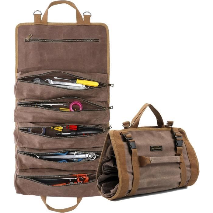 Dimensions (L x H x H) : 60 x 32 cm. Présentation du produit Lot De 10 Sacs À Outils En Toile Cirée Robuste De 473,6 G, Pochette Enroulable (6 À 19 Mm) Et 1 Poche Zippée, Sac De Rangeme [n671] Matériau : toile de coton ciré robuste de 453,6 g, durable et imperméable. Ne rétrécit pas facilement, épais et doux au toucher. Dimensions : (L) 50 cm x (H) 35 cm. Facile à transporter : les sangles élastiques maintiennent les... Facile à transporter : les sangles en toile vous permettent d'ouvrir et de fermer la pochette à outils rapidement, de ne pas s'étendre, transport sûr Sac À Outils De Grande Capacité Toche À Outils En Toile Imperméable À Gagnez du temps et des efforts Sac à outils et à clés en toile cirée durable, étrique ou SAE 14... Outils De Jardin Sac Seau Portable Organisateur De Avec Avantages du produit : 20 poches pour contenir un jeu de clés SAE/métrique, une clé Allen, une clé à cliquet, une clé réglable et d'autres outils à main. Dimensions des poches : environ 5,1 cm de large x 10,2 cm de haut
