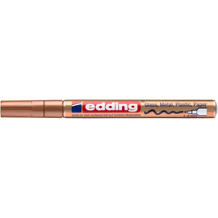 Feutre de peinture idéaux pour le dessin, la peinture, la fabrication et la décoration des surfaces lisses telles que le verre, le plastique, le métal... edding Creative 751 Marqueur peinture métallique 1-2 mm(or, argent et cuivre) edding Creative 751 Marqueur peinture brillante Couleurs de base métalliques, 1-2 mm(or, argent et cuivre) Marque : edding edding Creative 751 Marqueur peinture métallique 1-2 mm(or, argent et cuivre) Type de produit : stylo de marquage Taille : lot de 3 Couleur : métallique, Marque : edding Epaisseur du trait 1-2 mm. Ces marqueurs contiennent une encre de peinture de qualité industrielle, très opaque, à séchage rapide, à faible odeur, résistante aux taches et imperméable... Marqueur Peinture Brillante Edding 750 - Or - 1 Feutre Peinture 750 Rouge Marqueur peinture 750/751/780 - EDDING