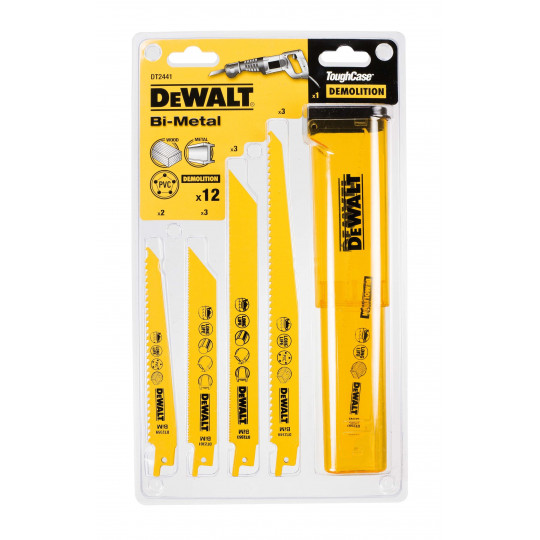 Leur construction bimétallique est conçue pour prolonger la durée de vie de la lame et minimiser les ruptures de la lame. DeWalt�� Reciprocating Saw Blade Kit 8 pc Pack Réalise des coupes rapides de métaux ferreux et non ferreux, tôle, tuyaux et profilés de 3 à 8 mm d'épaisseur. La construction bi métal allie l'acier à haute teneur en carbone et l'acier haute vitesse pour accroître la souplesse et la durabilité Dewalt Scie Sabre DEWALT Coffret De 8 Lames De Scie Sabre XR Runtime Pour La Coupe Du Dewalt 2x Recip Blades Coupe droite et durabilité accrue : le profil de lame haute et épaisse offre des coupes droites dans les applications de coupe de métaux lourds et ajoute de la durabilité pour les applications de démolition difficiles DEWALT - DWA4101 Lot de 8 lames de scie sabre pour bois et métal : : BricolageÀ propos de cet article Durée de vie jusqu'à 50 % plus longue : les dents brevetées optimisent l'élimination des copeaux pour une coupe efficace et une longue durée de vie. * Performance moyenne de la gamme de lames de scie alternatives Dewalt par rapport aux lames Dewalt de génération précédente... Chaque kit contient un assortiment de lames pour une variété d'applications de coupe et un ToughCase® pliable ou un rangement facile. * Performance moyenne de la gamme de lames de scie alternatives Dewalt par rapport aux lames Dewalt de génération précédente Fabriqué aux États-Unis avec des matériaux mondiaux. Lames de scie sabre XR Runtime conçues pour maximiser l'efficacité avec les outils sans fils