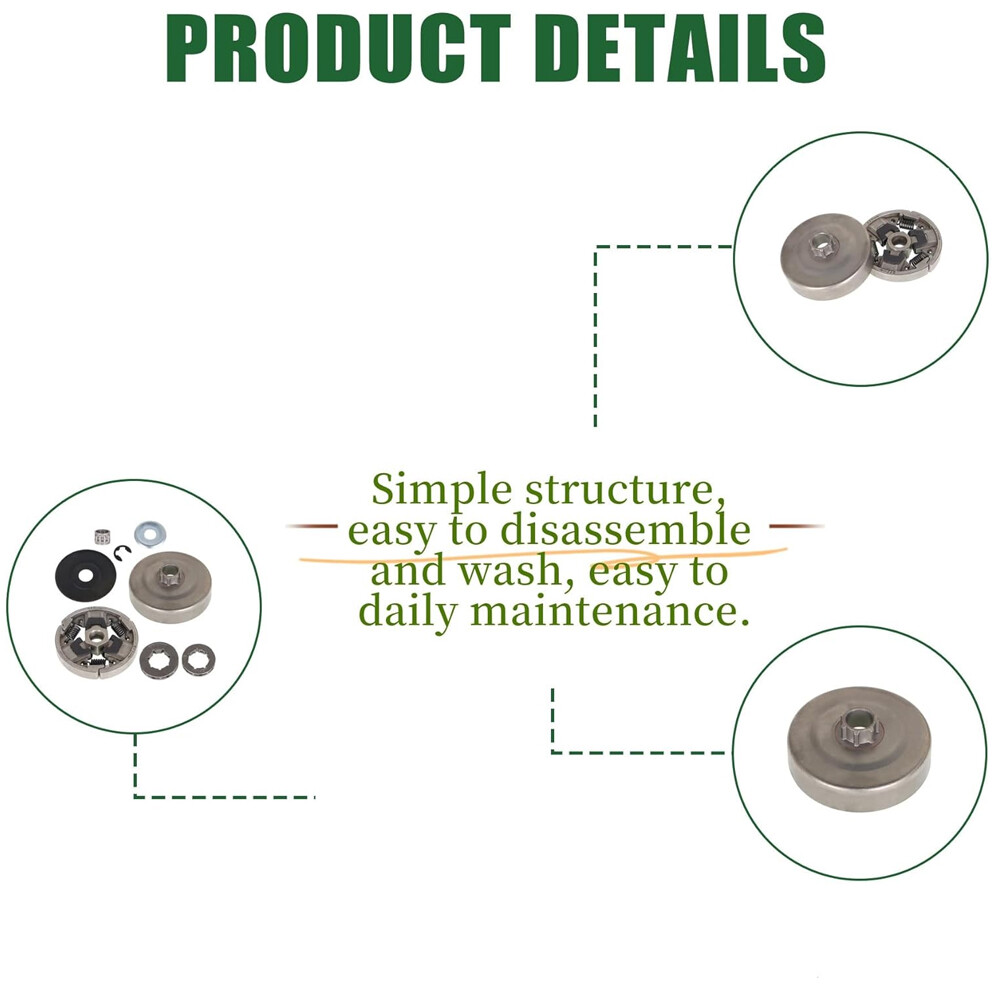 [Garantie de satisfaction à 100 %] : 90 jours de retour, de remboursement ou d'échange gratuit si vous n'êtes pas entièrement satisfait En cas de problème, n'hésitez pas à nous contacter. 325 "Kit De Pignon à Tambour D'embrayage Pour MS271 MS281 291 Pour La ) En cas de problème, n'hésitez pas à nous contacter. L'ensemble d'embrayage remplace : # 1139 160 2000. ➤[Matériaux de Haute Qualité]:Pignon de Chaîne 100% neuf et de haute qualité. Kit de tambour de pignon... Ej.Life Ensemble de Pignon de Tambour d'embrayage, Kit de Roulement de KIT ROULEMENT ?? tambour pignon tron?onneuse 325 7T avec outil de retrait d'emb - EUR 28,75.À VENDRE! Replace 537291702 537110503 502541603.Easy Installation: Designed for straightforward installation, this kit allows you to quickly replace worn parts without requiring professional assistance, making it is perfect for DIY enthusiasts. Easy Installation: Designed for straightforward installation, this kit allows you to quickly replace worn parts without requiring professional assistance, making it is perfect for DIY enthusiasts [Remarque] : veuillez le comparer avec vos pièces d'origine avant de le commander pour voir s'il peut être adapté à votre tronçonneuse d'origine. [Le forfait comprend] : 1 x ensemble d'embrayage, 1 x tambour d'embrayage, 1 x pignon de jante, 1 x rondelle d'embrayage, 1 x couvercle d'embrayage, 1 x roulement à aiguilles, 1 x clip en E.