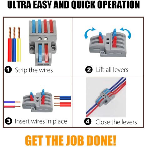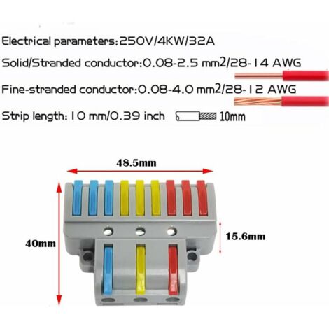 S curit Dites adieu aux rubans d' lectricien, brisez la tradition et rendez le c blage plus rapide et plus s r. ★ LARGEMENT UTILISÉ - Connecteurs universels: Ils conviennent aux fils solides avec 0,08 à 4 mm² / 28-12AWG et pour fil flexible avec 0,08 à 2,5 mm² / 28-14AWG. Prise Electrique AIPERQ 30 Pièces Connecteurs Electriques Rapide Avec Levier, Bornes De Connexion Automatique Domino Electriqueet Peut Etre Librement Combinecompact Borne Connexion Electrique 88859268 Borne Electrique Amazon Tension nominale: 250V / 4KV Courant nominal: 32A Puissance nominale: 7 kW Fil applicable: 0,08-2,5 (4) mm² AWG28-14 (12) Matériau de la partie conductrice: placage électrolytique de cuivre étain Ressort de serrage: acier au nickel-chrome fortement allié Coque: plastique ignifuge largement utilis Ils conviennent aux fils pleins de 0,08 4 mm 28-12AWG et aux fils flexibles de 0,08 2,5 mm 28-14AWG. Utilisez des matériaux ignifuges de haute qualité, longue durée de vie, pas de corrosion, anti-vieillissement, résistance à la pression, résistance aux hautes températures,d'une isolation, etc. CTRICALVER 10 Pcs Connecteur électrique avec levier de fonctionnement Ce kit comprend 10 connecteurs de fil compacts pour PC est livré avec des vis de montage (3 * 16 mm). Soulevez tous les leviers; Tige de pression bleue (1 entrée 2 sortie): alimentation négative SÉCURITAIRE - Ce kit comprend 10 connecteurs de fils compacts pour PC, sélectionnant le meilleur matériau isolant ignifuge en nylon modifié PA66, qui a une longue durée de vie, pas de corrosion, anti-vieillissement et de pression 4KV et contre les chocs électriques ★ SÉCURITAIRE - Ce kit comprend 10 connecteurs de fils compacts pour PC, sélectionnant le meilleur matériau isolant ignifuge en nylon modifié PA66, qui a une longue durée de vie, pas de corrosion, anti-vieillissement et de pression 4KV et contre les chocs électriques. Borne de connexion automatique Connecteur électrique sa petite taille et de son fonctionnement simple, le travail de cablage n'est plus compliqué et le connecteur ne nécessite aucun entretien. Vous pouvez les utiliser pour contr ler plusieurs lumi res par un interrupteur, 2 In 4 Out. Au lieu du ruban électrique traditionnel et des connecteurs bout à bout entrelacés, l'innovation technologique réduit le temps de câblage de 70%. Facile à utiliser et réutilisable, ce produit est livré avec des vis de montage (3 * 16 mm), qui peuvent être facilement fixées sur le gabarit et le panneau en plastique. Ils conviennent aux fils pleins de 0,08 à 4 mm² / 28-12AWG et aux fils flexibles de 0,08 à 2,5 mm² / 28-14AWG,Facile à utiliser et réutilisable. Chaque shrapnel indépendant de jonction, fil différent géré séparément, diamètre différent peut être connecté à la sécurité. Lot de 10 bornes automatiques à levier 2 fils souples 0,2 à 4mm². Idéal pour la connexion/déconnexion rapide des fils électriques. Facile à... Insérez les fils en place(Remarque : Dénudez la gaine extérieure du câble de 9 à 10 mm); ★ FACILE À UTILISER - Retirez d'abord la gaine de fil (9 ~ 10 mm), il suffit de pousser légèrement le clip orange vers le haut à 90 °, d'insérer le câble et d'éteindre l'interrupteur.