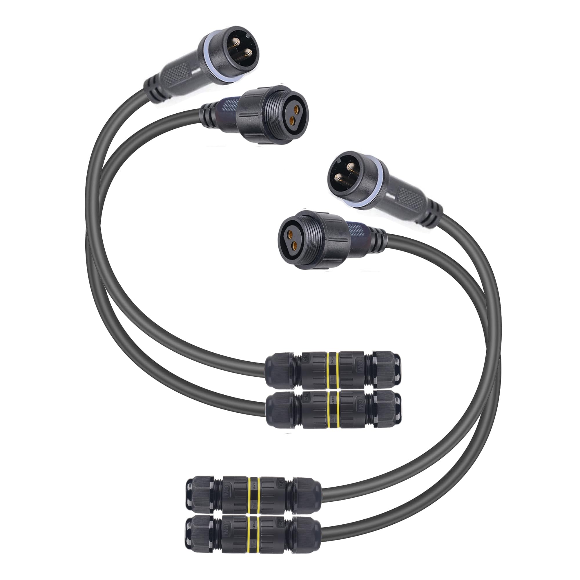 Caractéristiques : Modèles de broches : 2 broches Matériau du moule externe :PVC Taille du câble d'application :20 AWG Tension nominale :300 V Courant nominal :4A Degré d'étanchéité : IP68 Degré d'ignifugation :UL94V-0 La plus grande taille d'écrou :22 MM Emballage inclus : 1X 5 paires de connecteurs LED étanches 2Core 2pin Câble d'extension mâle 7,87 pouces/20 cm, câble d'extension femelle 7,87 pouces/20 cm. Matériau de haute qualité : les nattes sont pré-étamées, ce qui facilite la soudure. Pour Led 2 Fils,Mâle Femelle Connecteur LED Plug Connecteurs Ip68 Etanches 2 Broches 2 Curs Avec Cable D Extension 20awg 20cm Pour Bandes Lumineuses Led 5paires Connecteur étanche Acceptant des sections de câble monophasé de 3G2,5mm² à 3G6mm² et des tensions nominales standard de 250 / 400V, ces connecteurs permettent un raccordement rapide, étanche et sécurisé entre les câbles AC. Connecteur mâle étanche 2 broches verrouillable - Connecteur/Connecteur... Spécification : connecteurs de fil étanches 2 broches 20 AWG. Connectez vos bandes LED COB 220V sans effort. IP67 pour une utilisation en extérieur. Rapide et sans outil - éclairez en toute simplicité Utile : ce connecteur mâle/femelle est un accessoire très utile lors de l'installation de lampes LED étanches. PVC + fil de cuivre, pas lâche et fiable. QOFOWIN Connecteur électrique à 2 broches, mâle femelle 12 AWG 2 fils connecteur étanche avec 4 connecteurs M20 adaptés pour voiture, camion, bateau, bande lumineuse LED intérieur/extérieur