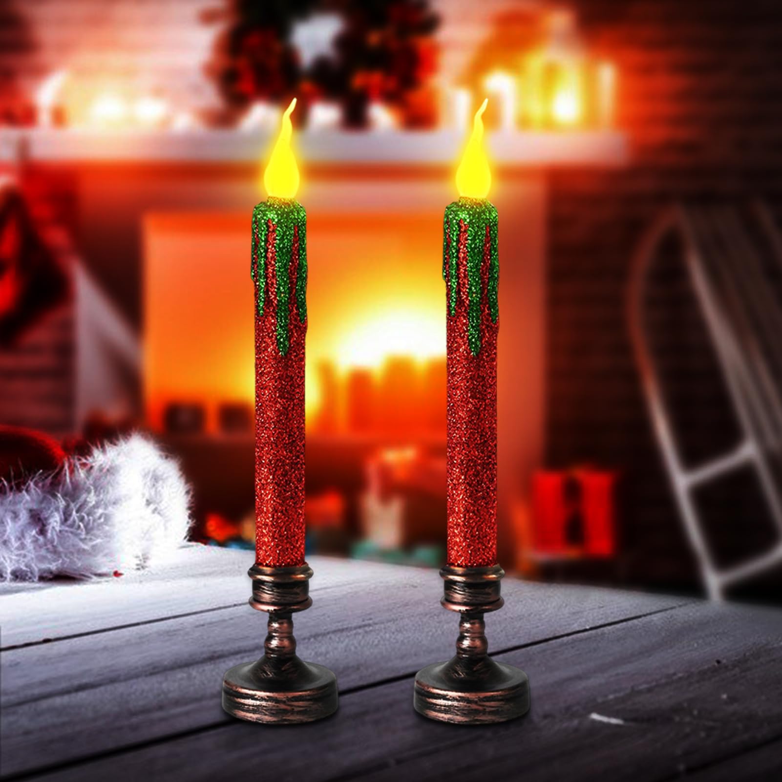 est un fournisseur d'artisanat pour la maison et le jardin. Le revêtement pailleté et la lumière vacillante des bougies offrent une lumière douce et chaleureuse. Les bougies effilées ont un aspect naturel et magnifiquement rouge pailleté. Vous constaterez qu'elles confèrent à votre intérieur une atmosphère plus... Les bougies effilées ont un aspect naturel et magnifiquement rouge pailleté. Décor idéal pour la maison, les chambres à coucher, les salles de bain, les cuisines, les salles à manger, les bureaux, les tables, les comptoirs, les étagères, les lanternes, les décorations de vacances, Halloween, Thanksgiving, Noël, les fêtes, les mariages, les anniversaires, les églises, les restaurants, les hôtels, les bars et bien d'autres choses encore. Les lampes à flamme vacillante apportent de la chaleur et de l'agréable pour éclairer la maison. Économie d'énergie, sans fumée, lumières LED sans flamme, zéro émission de carbone, sans danger pour les enfants, les animaux de compagnie, les personnes âgées. Les mesures de la bougie pailletée sans flamme sont 17,1 x 2,5 cm, chaque bougie pailletée fonctionne avec 2 piles AA (non incluses), serrer ou desserrer le capuchon sur la base de la bougie pailletée pour ON/OFF, la minuterie règle la bougie pailletée pour rester allumée pendant 6 heures et s'éteindre pendant 18 heures. Illuminez le manteau de la cheminée, l'étagère, la fenêtre avec des bougies sans flamme clignotantes à LED dans un porte-bougie. Also can be a great gift for birthday, mother's day, wedding, anniversary or holiday. Bougie Scintillante Yme Lot De 6 Bougies Coniques LED Sans Flamme, Fonctionnant à Piles, Avec Télécommande Et Minuteur, Cire Véritable Pour Décoration D'intérieur, Automne, Halloween, Thanksgiving, Noël Lampe Effet Flamme Bougies Led Halloween CVHOMEDECO. Lot De 3 Bougies Coniques Sans Flamme Avec Télécommande à 10 Touches, Fonctionne à Piles, Mèche 3D Scintillante, Cire Véritable, Décoration De Fête De Noël, 2 X 27 Cm, Rouge Bougie Led Rouge Les bougies tapers pailletées peuvent être utilisées pour décorer un comptoir, une table, une étagère, un mur, une fenêtre, une lanterne, un chandelier ou n'importe quelle pièce.