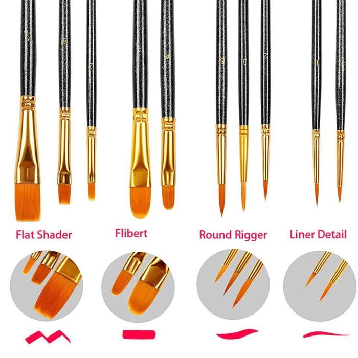 Nom du produit : ensemble de pinceaux aquarelle. Artisanat avancé : avec une poignée ergonomique, le design compact assure une prise en main confortable, ces ensembles de pinceaux de peinture aquarelle sont parfaits pour les travaux détaillés et les applications plus larges. Utilisations multiples : ces pinceaux à pointe ronde peuvent non seulement être utilisés pour l'aquarelle, mais également largement adaptés pour l'acrylique, la peinture à l'huile, les ongles, la peinture du visage, les illustrations, le corps, les cours d'art, etc Ensemble de pinceaux à Aquarelle pour artistes, en... – Grandado Contenu de l'emballage : cet ensemble de pinceaux aquarelle dispose de 12 tailles différentes au choix, de largeur et de longueur riches, les tailles sont : 1#, 2#, 3#, 4#, 5#, 6#, 7, 8, 9, #10, #11, #12., Bon matériau : ces pinceaux aquarelle sont fabriqués en nylon, tube en aluminium, bois de pin, offrant une douceur, une élasticité et une flexibilité supérieures, permettant un contrôle sans effort de la précision des traits. Pinceaux Aquarelle Lot De 30 Pinceaux à Peinture, Pinceaux à Pointe Ronde Et Pointue, Poils En Nylon, Pinceaux Pour Peinture Acrylique, Aquarelle, - Bricolage Aquarelle Et Pinceaux Matériau : nylon, tube en aluminium, bois de pin. Dimensions du produit : voir photo. Couleur : marron, argent métallisé. Détails élevés]Ce lot de pinceaux aquarelle dispose de 12 tailles différentes au choix, de riches options de largeur et de longueur pour vous aider à faire des travaux de peinture détaillés et à obtenir d'excellents résultats. Pinceaux à pointe ronde et pinceaux filbert, 12 pinceaux...