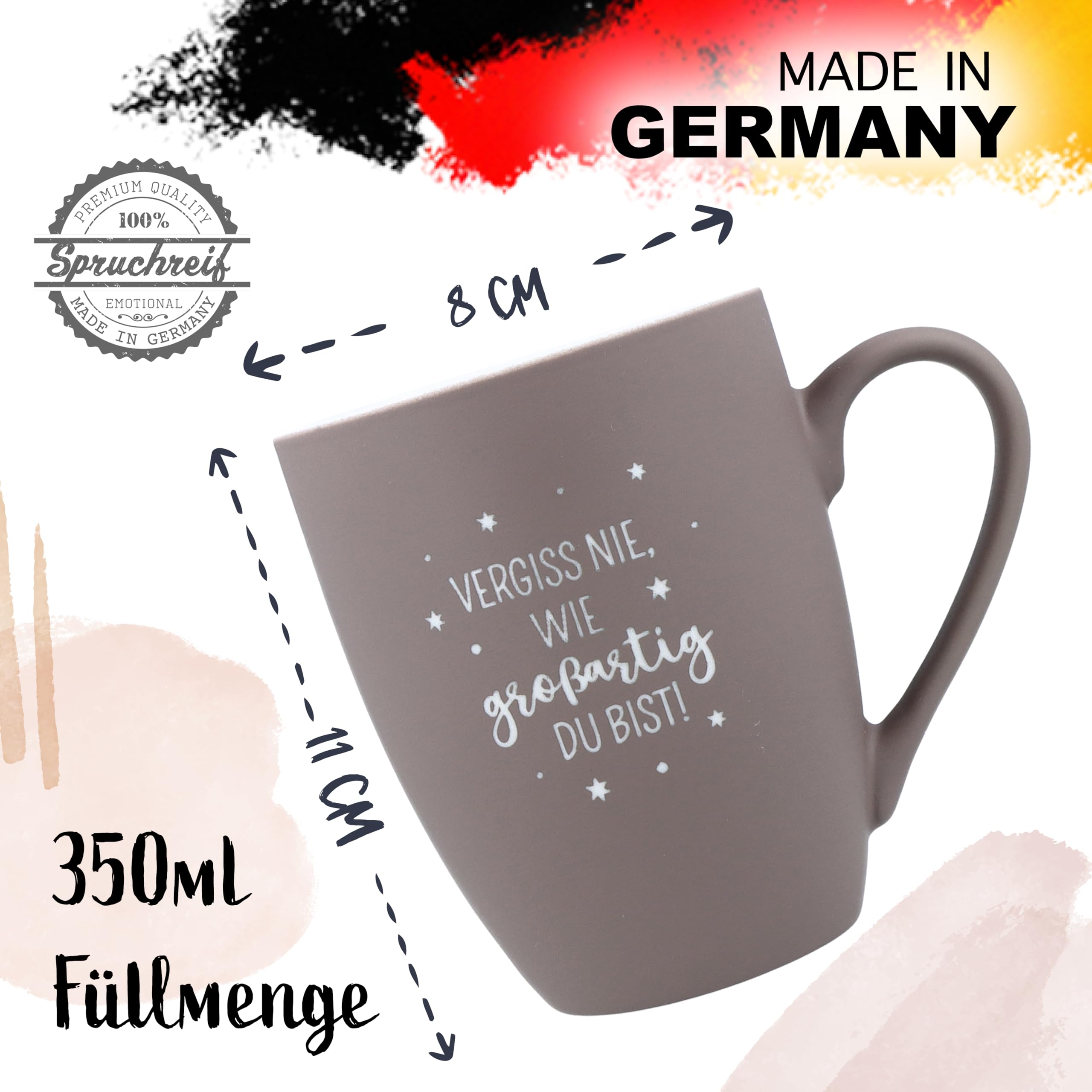 DIMENSIONS + ENTRETIEN : Capacité : 350 ml, hauteur : 11 cm, Ø : 8 cm., Couleur : rose. Nous fabriquons des cadeaux personnels en bois à l'aide de la technologie laser la plus moderne. La surface spéciale Soft Touch maintient la boisson chaude plus longtemps et donne à la tasse un toucher fin et velouté. Idéal pour le plaisir à la maison, au travail ou au bureau. Nos tasses passent au lave-vaisselle et au micro-ondes Nos tasses conçues avec amour attirent tous les regards et conviennent aussi bien aux droitiers qu'aux gauchers grâce à la gravure des deux côtés. La tasse Soft Touch se distingue par son design mat et apporte une brise fraîche à chaque petit déjeuner ou bureau. La gravure laser de qualité supérieure... Tasse douce au toucher avec gravure Pour un départ parfait dans la journée, comme compagnon au travail ou pour le plaisir à la maison. Passe au lave-vaisselle et au micro-ondes La surface spéciale Soft Touch maintient la boisson au chaud plus longtemps et donne à la tasse un toucher fin et velouté. SPRUCHREIF Tasse De Chef - Surface En Silicone Souple - Tasse Avec L'écriture est résistante et ne peut pas être lavée. Spruchreif Tasse Soft Touch Avec Gravure Des Deux Côtés | Cadeau Rat De Bibliothèque | Book Lover | 350 Ml Un cadeau qui fera sourire votre bien-aimée. Le motif est fabriqué à l'aide de la technologie laser la plus moderne et précise. Idéal également comme petite attention entre les deux. Détails de l'article : - Tous les articles sont gravés au laser par un système laser de pointe. - Le design est permanent et ne s'estompera pas et ne s'effacera... Avec nos tasses au toucher doux, la vie devient beaucoup plus colorée.