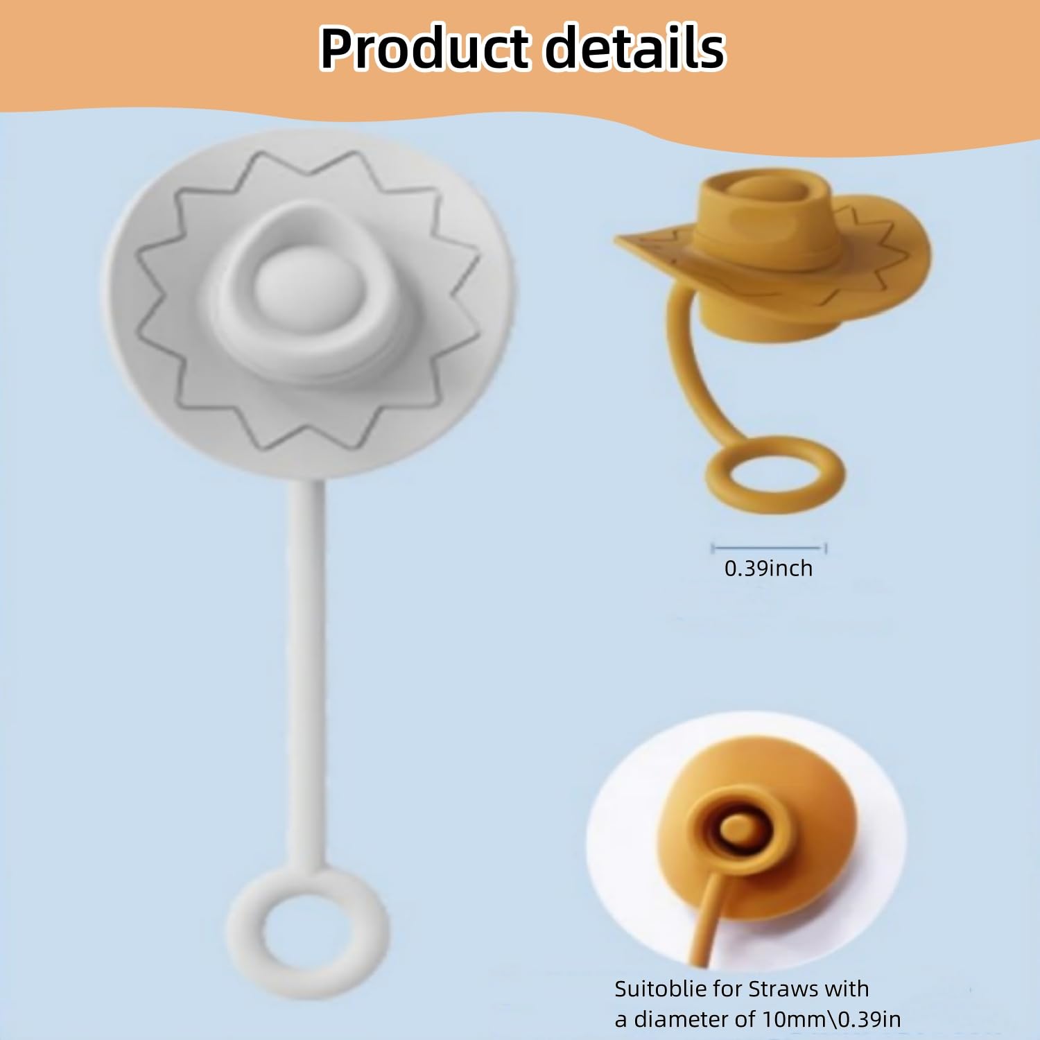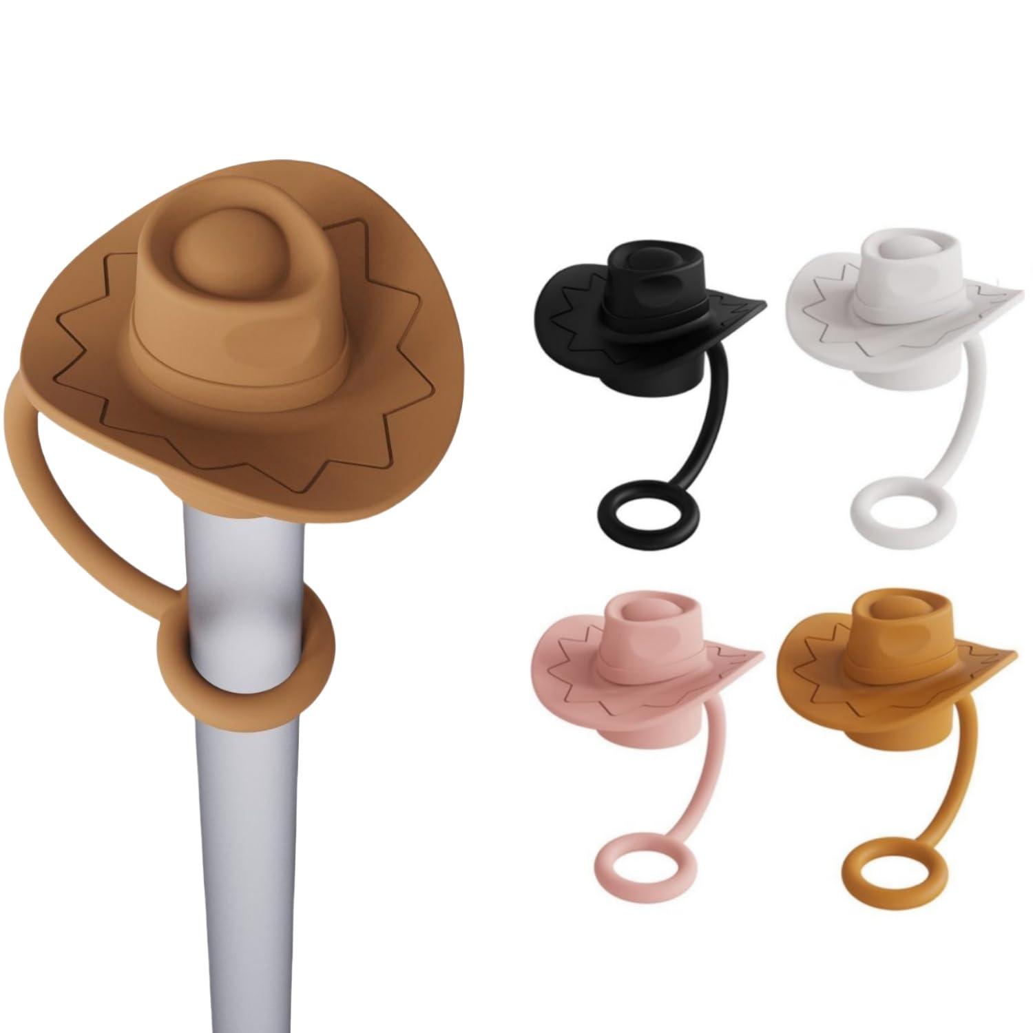 6Pcs Housses De Paille Pour Chapeau Cow-Girl, Pailles Silicone Pour