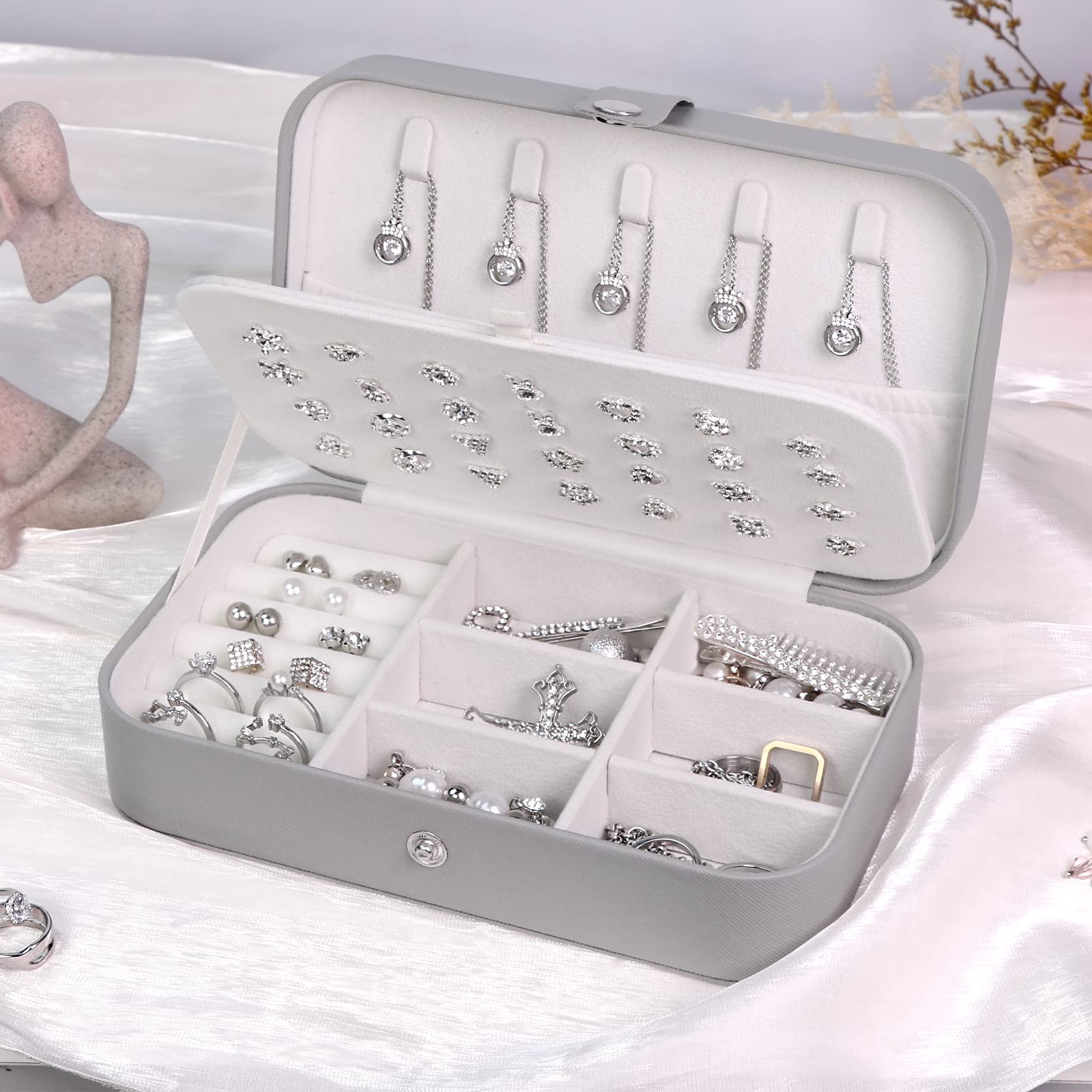 Boite à Bijoux De Voyage Boîte à Bijoux De Voyage Pour Femmes Et Filles, Double Couche, Petit Organisateur De Bijoux Pour Bagues, Boucles D'oreilles, Colliers, Bracelets, étui à Bijoux En Cuir Synthétique De Qualité Coffret Bijoux Voyage Vraiment la taille parfaite pour un voyage court ou long, excellent moyen de voyager avec vos bijoux. CASEGRACE Petite boîte à bijoux de voyage pour femme - Organiseur de Très pratique lors de vos déplacements. Des chaussures aux vêtements, des tenues de sport aux accessoires. Protège vos bijoux des rayures et des chocs. Cette boîte à bijoux a la taille parfaite pour s'adapter n'importe où, non seulement garder vos bijoux bien en sécurité, mais aussi garder vos bijoux en ordre et éviter qu'ils s'emmêlent ou ne s'abîment pendant le voyage. Couleur extérieure : blanc. Les mesures étant prises à la main, les tailles indiquées peuvent varier (± 2 cm). Cadeau idéal pour les femmes et les filles : l'étui à bijoux de voyage est spécialement conçu pour les femmes et les filles, afin de fournir un cadeau parfait pour celles qui sont toujours en voyage. Légère et portable : les boîtes à bijoux pour femme ne font que 220 g, très pratiques à mettre dans un bagage à main/valise ou à glisser dans un tiroir. Taille parfaite pour les voyages, peut contenir une quantité surprenante de bijoux. Design unique : le design compact et l'extérieur robuste signifie qu'il voyagera bien, ainsi que les séparateurs amovibles et la plaque pratique pour boucles d'oreilles, ce qui lui permet non seulement de nombreux compartiments pour accueillir de nombreux bijoux à des fins de voyage, mais peut également garder les bijoux en ordre et éviter qu'ils ne s'emmêlent ou ne s'abîment pendant le voyage. Boîte À Bijoux Double De Voyage, Boîte À Bijoux En Cuir Pu Pour Femmes... En plus de cela, le petit organisateur de bijoux a beaucoup d'espace et divers départements pour contenir vos bijoux. Vraiment assez petit pour économiser de l'espace mais assez grand pour ranger des bijoux. Caractéristiques : Matériaux : cuir PU + velours doux. Aspect attrayant et construction solide : l'étui de voyage mesure 16 x 10,9 x 5,6 cm, petite taille mais grande capacité avec double couche, la partie supérieure du couvercle comprend 5 crochets et une poche élastique inférieure pour empêcher le collier de s'emmêler. La partie centrale peut contenir 10 paires de des boucles d'oreilles; la partie supérieure est dotée de 5 crochets et d'une poche élastique inférieure pour maintenir parfaitement les colliers et les bracelets en place Dimensions : 16 cm (L) x 10,9 cm (l) x 5,6 cm (H)., Poids net : 0,2 kg. Permet de garder vos accessoires indispensables comme bagues, boucles d'oreilles, colliers, bracelets organisés – moins de chance de s'emmêler lorsque vous les rangez dans un sac.