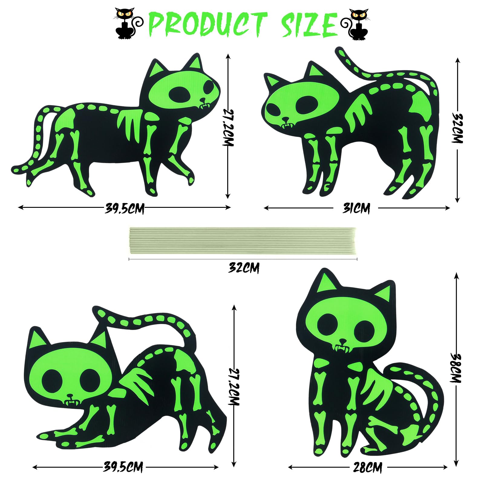 Cadeau exquis : nous avons configuré une partie des autocollants de tatouage chat Halloween dans chaque produit. Lot de 4 panneaux fluorescents pour décoration de jardin - Motif squelette de chat brillant dans le noir - Silhouette de chat - Avec piquets - Pour fête d'Halloween 【Combinaison de plusieurs squelettes】 Panneau de jardin en forme de silhouette de chat avec piquets au design original en plastique noir pour le jardin, silhouette de chat noctilucent la nuit, 4 styles sont disponibles. Principaux points forts · Couleur. Vert · Marque. Fanboxk · Matériau. Plastique · Dimensions de l'article L x l x H 30,5 x 40,6 centimètres · Fabricant. Fanboxk Laissez ces jolies décorations de jardin en forme de chat vous apporter une touche de vitalité, de joyeuse et de romantisme. Facile à installer : il y a des piquets en fibre de 10,2 cm à monter au bas de chaque chat squelette, ce qui rend l'insertion stable. Achetez en toute confiance : la satisfaction totale de nos clients est notre priorité. Décoration d'Halloween pour jardin ou pelouse - Panneau de cour avec silhouette de chat avec piquets - Fabriqué en plastique ondulé noir de qualité supérieure de 4 mm - Silhouette de chat lumineuse dans le noir jusqu'à 12 heures - Lettres imperméables pour cour - Durables et résistantes aux intempéries. Panneaux de cour d'halloween - France Si ces panneaux de remise de diplôme avec piquets ne sont pas tout à fait ce que vous attendez, il vous suffit de nous contacter pour un remboursement rapide ou un remplacement. Combinaison multiple de squelette de chat : silhouette de chat avec piquets au design original en plastique noir - Lot de 4 styles disponibles. Étape 2 : placez-les sur le sol du jardin. Chat Noir Halloween Deco Panneau De Cour D'Halloween, Silhouette De Chat Noir, Décoration Chat Halloween Fabriquées à partir de plastique ondulé épais, ces décorations de pelouse d'Halloween en forme de chat noir sont robustes, durables et imperméables, ce qui les... Achetez en toute confiance : notre objectif est la satisfaction totale de nos clients. Étape 1 : joindre le chat et les piquets ensemble.