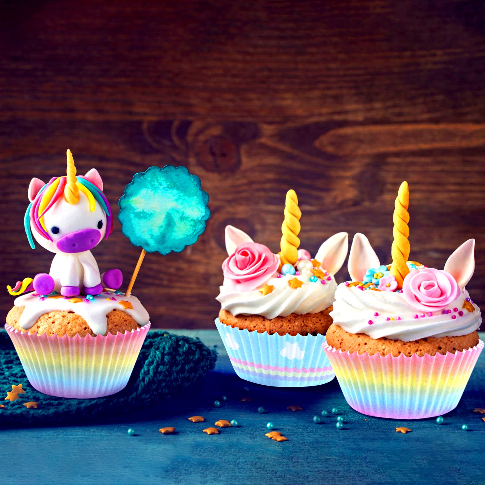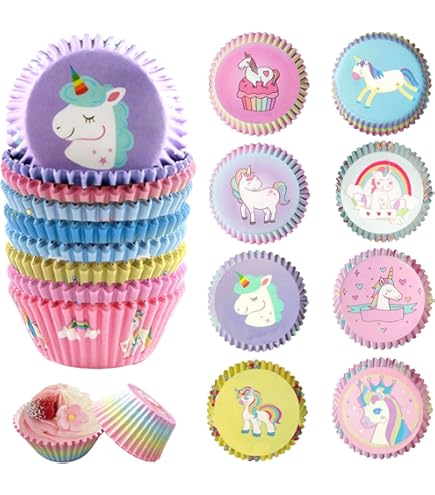 Moules pour sujets 'Licorne Taille : le diamètre supérieur est de 7,5 cm/2,95 pouces, le diamètre inférieur est de 4,8 cm/1,89 pouces, la hauteur est de 3 cm/1,18 pouces et le diamètre déplié simple est de 11 cm/4,33 pouces. Contenu de l'emballage : 200 moules à cupcakes en papier licorne en 2 motifs, 100 pièces de chaque. 50 moules à muffins et cupcakes - Licorne à prix minis sur Gateaux En Lot DPKOW Lot De 23 Décorations De Cupcakes Licorne Arc-en-ciel – Décorations De Gâteau D'anniversaire Pour Enfants Du 1er Au 4e Anniversaire Moule Gâteau Enfant Matériau de sécurité - Fabriqué en papier sulfurisé de qualité alimentaire avec impression à l'encre de soja de qualité alimentaire, le motif est clair et vif, peut supporter jusqu'à 428℉/220℃. Large gamme d'applications - Peut être utilisé pour la cuisson quotidienne de petits gâteaux, ou pour faire des cupcakes pour des fêtes à thème de licorne, comme une fête d'anniversaire de licorne pour les enfants ou une fête prénatale. Ces adorables motifs de licorne plairont à coup sûr aux enfants et rendront les cupcakes cuits au four non seulement délicieux mais aussi beaux. Et le diamètre déplié du revêtement de cupcake unique est de 11 cm / 4,33 . Ce que vous obtiendrez - 200 moules à pâtisserie en papier licorne en 2 motifs, 100 pièces de chaque. Moules à cupcake en papier licorne Smiley 24 pièces | Toppers en papier... Utilisation : peut être utilisé pour la cuisson quotidienne de petits gâteaux ou pour faire des cupcakes pour des soirées sur le thème des licornes.