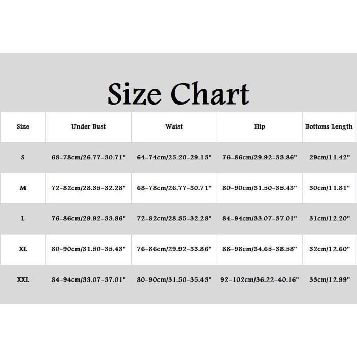 Taille------- Buste supérieur--- Buste inférieur--- Buste --- Cuisses--- Longueur du bas. Maillot Bain 2 Pièces Push-up Short Taille Haute Tankini Modèle élégant et moderne : Design spécial qui recouvre le ventre et montre la beauté de votre dos. Maillot De Bain Femme 2 Pièces Sexy String Taille Haute Mini Micro Bikini Femme Push Up Rembourré Tankini Maillot De Bain Échancré Femme Natation Piscine Remarque : Veuillez choisir votre taille exacte. Femme Maillot De Bain 2 Pièces Sexy Push Up Tankini Amincissante Slim Taille Haute Bikini Classique De Swimwear De Plage M Bleu ; Livraison gratuite. i ; i. Livré... Si vous n'êtes pas sûr, n'hésitez pas à nous contacter et nous vous enverrons des informations pour vous aider à choisir la bonne taille. Confortable à porter : Il peut être utilisé non seulement comme maillot de bain, mais aussi comme tenue de chambre ou comme vêtement d'intérieur, très agréable à porter et parfait pour une liberté de mouvement à la maison. Tissu à séchage rapide, matière douce et confortable à porter.
