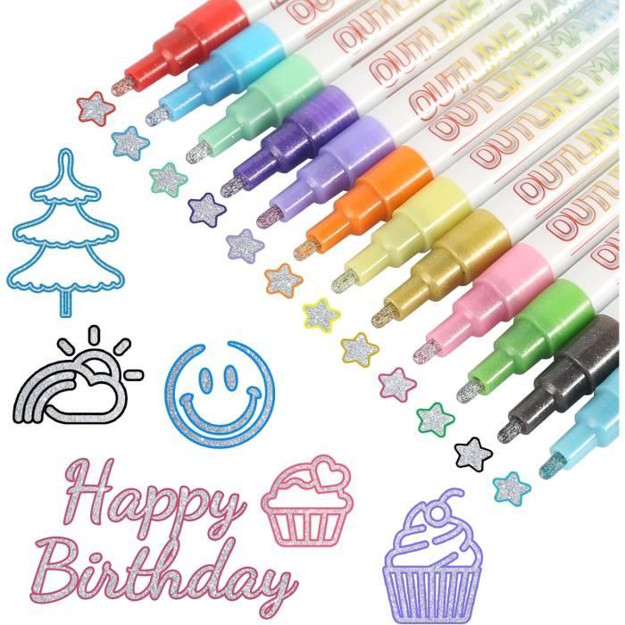 Pour les princesses et les artistes : chaque fille va adorer nos stylos à paillettes. Stylo Magique 12 Stylos Pailletés Magiques - Marqueurs à Paillettes Pour Enfants Stylos Paillettes Caractéristiques : - Matériau : plastique. Nos stylos à paillettes ont un effet non seulement sur le papier, mais aussi sur les surfaces lisses. Description Wow, ces stylos pailletés vont faire craquer toutes les petites artistes ! Le pack comprend 12 couleurs hyper vibrantes avec des effets métallisés et scintillants. Le truc génial : ils créent un double contour - d'abord la couleur de base, puis une couche de paillettes qui brille vraiment. Ils sont super faciles à utiliser : tu secoues le stylo, tu appuies sur la pointe pour... Que ce soit pour colorier des princesses ou pour des projets artistiques, ces stylos sont un rêve pour toute fille qui aime exprimer sa créativité avec une touche de paillettes. 🎨Sûr et non toxique : un choix sûr pour vos enfants. 24 Pièces Outline stylos à paillettes double ligne, double ligne... 🎨Magie scintillante : avec nos 12 crayons de contour de différentes couleurs, les petits artistes peuvent donner vie à leurs œuvres d'art ! L'encre garantit des œuvres d'art durables sur une grande variété de matériaux. Splat Planet Livre De Coloriage De Voiture Magique Avec Ensemble De Parfaits pour le scrapbooking, la fabrication de cartes ou la décoration de cadeaux. Les stylos sont parfaits pour les mains des enfants et parfaits comme petite surprise pour les calendriers de l'Avent. Avec une longueur de 13,5 cm et un capuchon de 2,5 cm, ces stylos sont parfaits pour les petits artistes. Profitez d'heures créatives sans souci Idéal pour l'école et la maison.