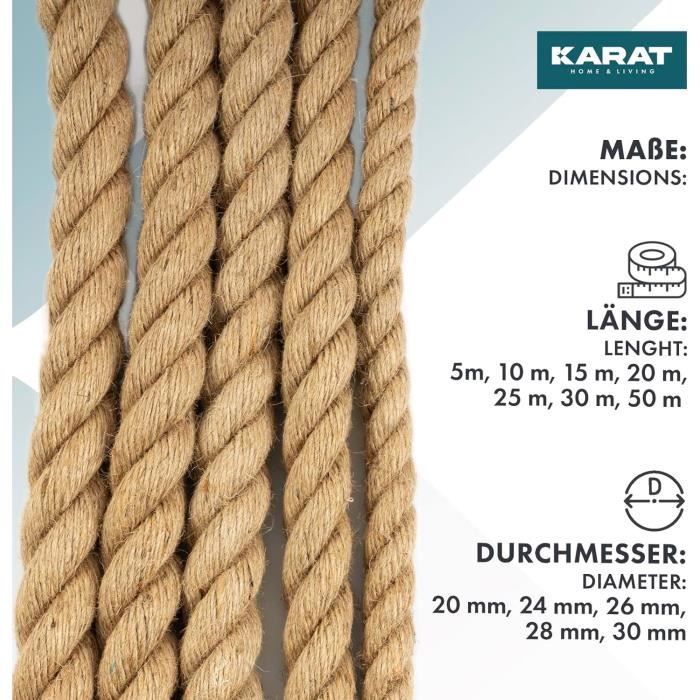 N'hésitez pas à nous contacter à tout moment. Ficelle Agricole KARAT Corde De Jute 100% Naturel, 5 M, épaisseur 6 Mm, Très Solide, Pour L'Escalade, Le Sport, La Décoration De Jardin, Les Travaux Manuels, Les Arbres à Chat Corde Jute Pour Extérieur ● La corde de jute est solide, résistante à l'usure, avec une excellente durabilité, une forte capacité de charge et une longue durée de vie. Description À propos de nous ZEONHAK considère toujours des produits de haute qualité, un service satisfaisant, une orientation client comme un engagement. Découvrez notre sélection de cordes en chanvre, sisal, coton, jute, coco et raphia, parfaites pour la décoration, l’artisanat et les loisirs créatifs. Leur texture authentique apporte une touche naturelle et chic à tous vos projets Vous n'avez aucun risque, cliquez sur Ajouter au panier Matériau naturel : la corde de jute est fabriquée en jute, qui est solide, résistant à l'usure, flexible, avec une excellente durabilité et une forte capacité de charge. Le cordon en jute épais pour les travaux manuels n'a pas de bavures dures et ne blessera pas vos mains. ZEONHAK Corde de jute naturelle 120 m x 6 mm... Que ce soit pour l'artisanat, le jardinage, la construction, les projets d'aménagement paysager, les jardinières suspendues ou l'emballage de pieds de meubles pour la décoration, cette corde de chanvre torsadée peut bien terminer tous les projets. Si vous êtes à la recherche d'une corde de jute, ZEONHAK est votre choix idéal. Corde Imitation Chanvre ZEONHAK Corde De Jute Naturelle 120 M X Pourquoi nous choisir ? ● L'aspect rustique de la corde de jute peut être parfaitement assorti à n'importe quelle décoration, ajoutant de l'élégance à votre maison et décoration. Caractéristiques : Matériau : jute. ● Conseils : pour éviter de desserrer la corde en toile de jute, veuillez faire un nœud après la coupe ou envelopper l'extrémité de la corde fermement avec du ruban adhésif. Cette corde de jute de 6 mm est solide, mais elle est modérément douce et facile à nouer, de sorte que vous pouvez la couper selon vos besoins. Bon shopping : si notre cordon de jute a des problèmes de qualité, vous pouvez demander un remboursement dans les 30 jours suivant la réception des produits.