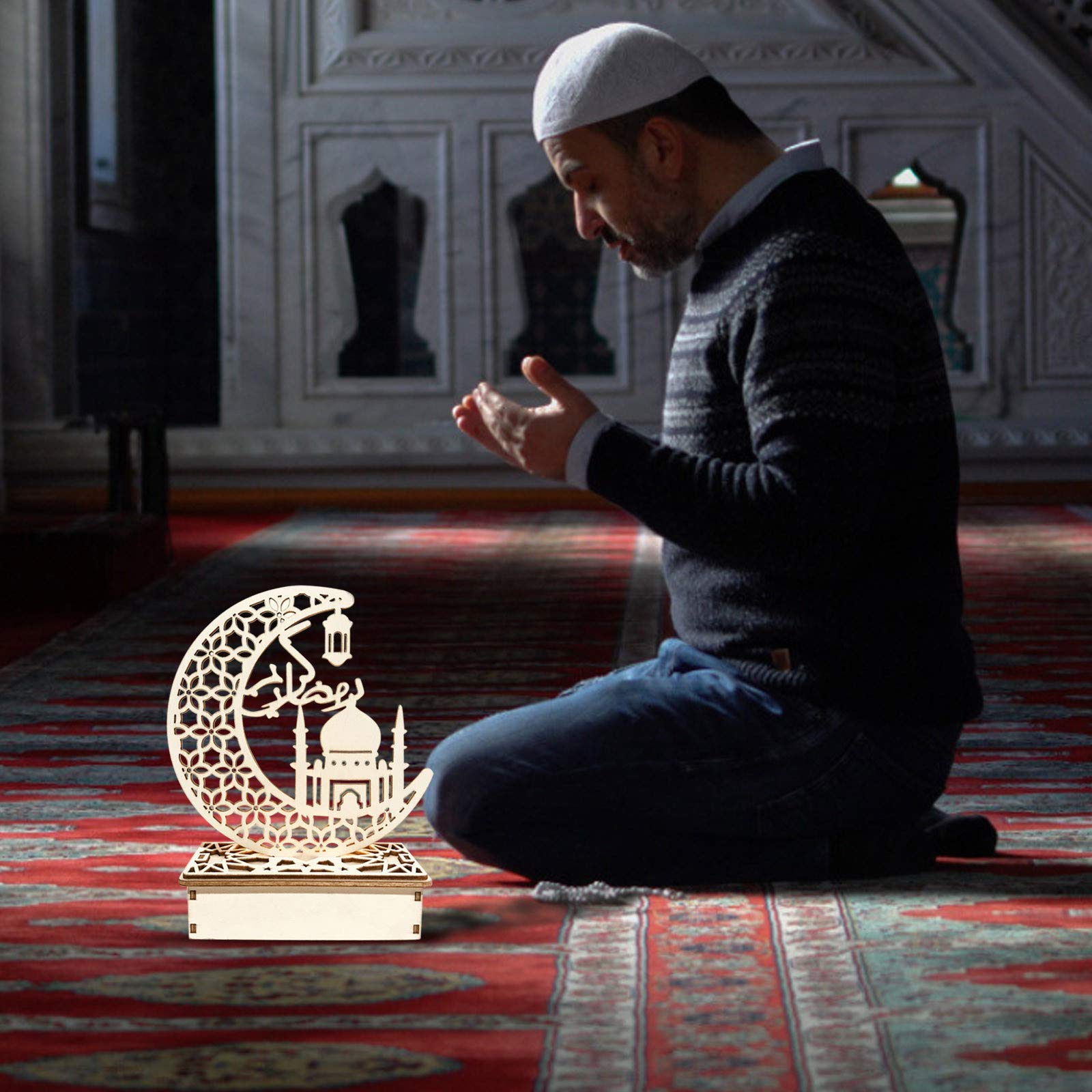 Décoration de Ramadan - Décoration de festival musulman - En bois - Lampe décorative pour le Ramadan Mubarak - Lampe décorative pour festival musulman - Pour terrasse intérieure et extérieure Titre De Calligraphie Arabe Simple Eid Mubarak Avec Ornement De Titre De Calligraphie Arabe Simple Eid Mubarak Avec Ornement De... Utilisation : lanterne debout ou suspendue pour une utilisation dans le jardin ou le camping en plein air, ou avec des crochets et des supports de lanterne assortis. Matériau : fabriqué en bois de haute qualité. Cette lampe a un design unique de bricolage. Lanterne décorative pour le Ramadan, lanterne en forme d'étoile croissant de lune, musulmane islamique Eid Mubarak ou d'autres fêtes. Favorise les compétences pratiques : les parents peuvent faire l'assemblage avec leurs enfants pour améliorer les capacités pratiques de leurs enfants. 24 cm de haut et 10 cm de large. Une décoration unique et merveilleuse pour les murs de la maison ou une décoration unique pour une pièce au début du Ramadan. Lampe en bos brcolage palas slamque LED décoratons cadeaux de... Led Ramadan Mubarak MEYENG - Décoration LED Eid Ramadan Mubarak Décorations Ornement En Bois Musulman LED Croissant, Ramadan Veilleuse, Pour L'Aïd Mubarak Islamique Musulman Festivals Mosquée Prière Lune Decoration Ramadan Facile à installer et à démonter, très décoratif et adapté à toutes les occasions.