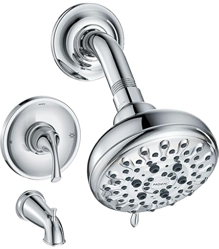 Levier poignées rendent facile à ajuster l'eau Equipé du posi-temp (R) pressure-balancing valve de contrôle pour aider à maintenir la température de l'eau dans la douche 3–3/10,2 cm de diamètre tête de pulvérisation – Cette performance Eco pommeau de douche Economie d'eau sans sacrifier la performance Simple et élégante, la glyde des courbes harmonieuses et les contours de la collection Flow aussi magnifique que le flux de l'eau du robinet, la création d'un style de transition qui s étend sur une variété de décorer des tendances Robinet de baignoire-douche écoperformant Posi-Temp Align de MOEN... Moen T2743 Glyde Posi-Temp Robinet De Baignoire/douche Robinet de douche MOEN Posi-Temp chromé 90° à 1 jet avec douche à main