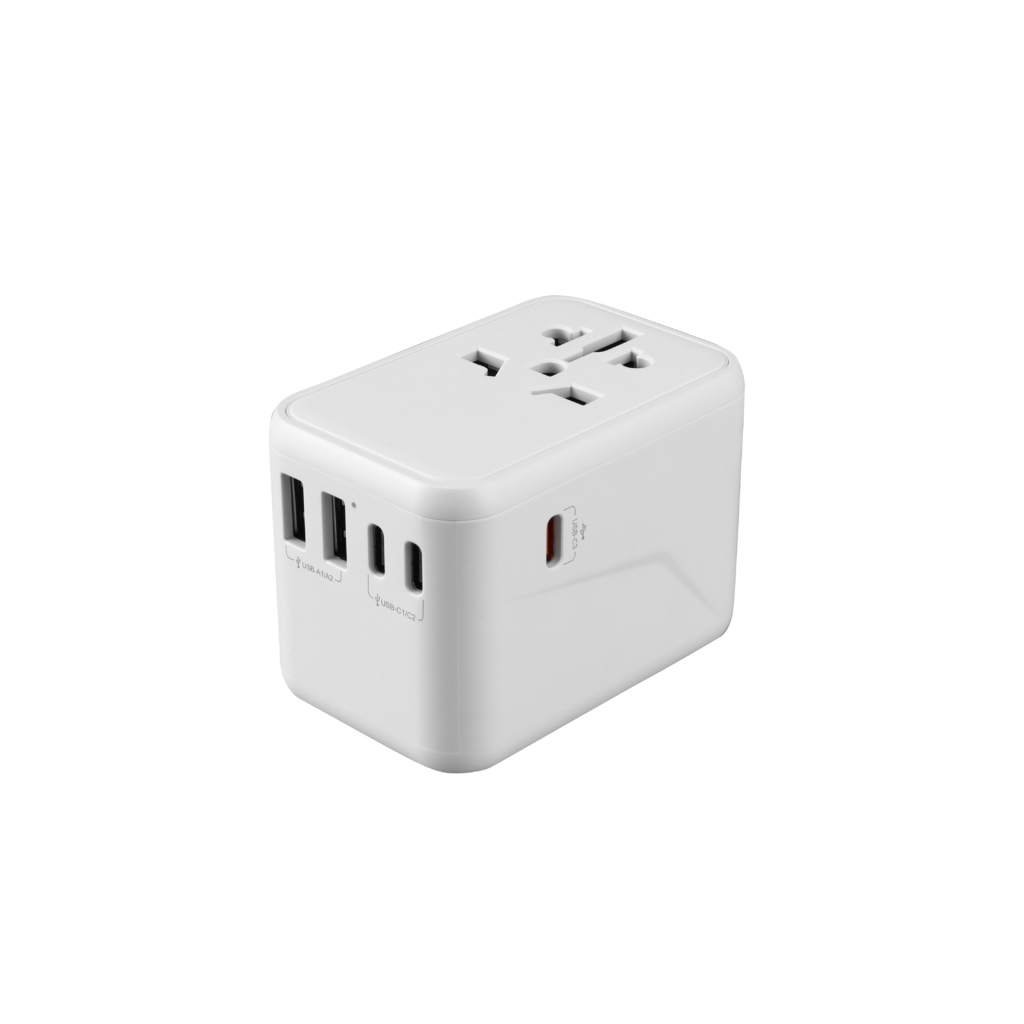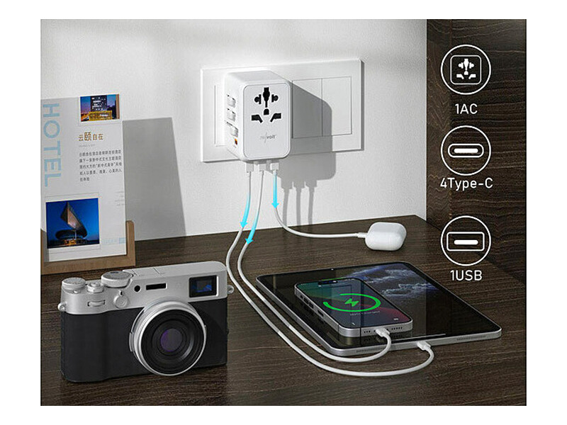 Worldwide USB-A & USB-C GaN Charger (65W PD Voyagez l'esprit léger avec ces quatre adaptateurs universels GaN jusqu'à 65 W de la marque revolt. Avec cet adaptateur secteur de voyage, branchez vos appareils électriques dans plus de 150 pays Voyagez l'esprit léger avec cet adaptateur universel GaN jusqu'à 65 W de la marque revolt. Cet appareil peut être utilisé dans plus de 150 pays ! Il convient aux prises et fiches courantes dans l'UE, au Royaume-Uni, aux États-Unis, en Australie, ainsi que dans tous les pays qui utilisent... Adaptateur universel GaN jusqu'à 65 W de la marque revolt Adaptateur universel de voyage avec technologie GaN III Formats de prises pour l'UE, le Royaume-Uni, les États-Unis/le Japon et l'Australie (adaptés à plus de 180 pays) - Voir le guide des pays Trois ports de charge USB ultra-rapides et un port USB standard : - 2 ports USB-C Power Delivery 3.0 (avec prise en charge PPS) et Quick Charge 4 : jusqu’à 65 W chacune. - 1 port USB-A Quick... Adaptateur Prise Universelle Voyage Adaptateur Universel Travel Mate 65 W GaN Avec Ports USB Adaptateur Voyage 3 ports USB-C 15 W, 1 port USB-A Quick Charge 18 W Jusqu'à 2500 W / 10 A par adaptateur de courant
