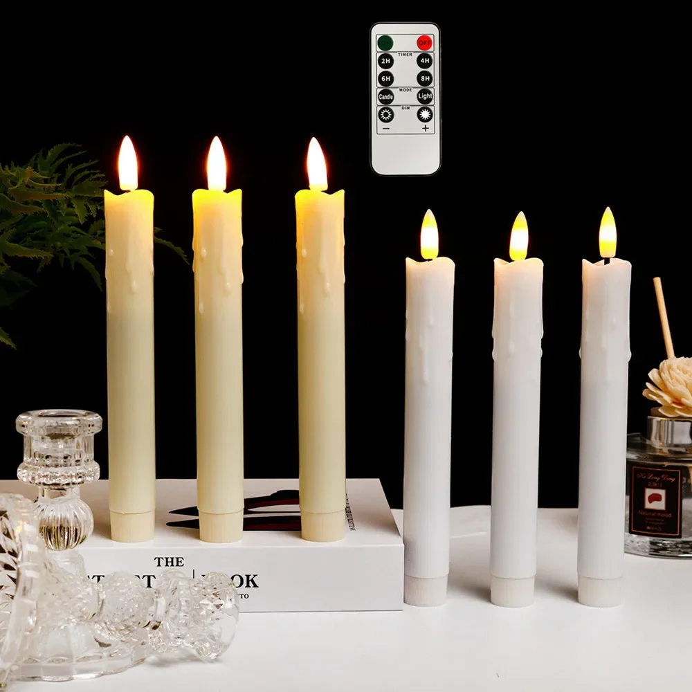 6pcs LED Lumière Chaude Scintillante Sans Flamme, Bougies Utilisation fiable : la bougie conique sans flamme scintillante n'a pas de véritable feu. Contrôle intelligent : vous recevrez deux télécommandes à 10 boutons pour toutes les bougies, chaque télécommande peut contrôler 6 bougies en même temps, vous pouvez non seulement créer une atmosphère chaleureuse mais aussi les contrôler intelligemment. Ce lot de 6 bougies à thé en porcelaine bleue et blanche sans flamme transforme instantanément n'importe quel espace en un sanctuaire confortable et enchanteur ! Proposant des effets de scintillement réalistes qui imitent la danse douce et naturelle de vraies bougies, ces bougies LED alimentées par batterie offrent une chaleur captivante tout en éliminant complètement les risques d... Lumière clignotante réaliste: émettant une lumière clignotante blanche ou jaune brillante et chaude, la pièce chaude sera remplie. ... 6pcs Bougies Sans Flamme... LISTE DE L'EMBALLAGE : Ce lot contient 6 belles bougies coniques sans flamme scintillantes et 2 télécommandes avec 10 boutons différents. ARTIBETTER Lot de 6 bougies LED sans flamme avec télécommande Chaque bougie est alimentée par 2 piles AAA (non incluses). Vous n'avez pas besoin d'utiliser un chandelier (vous pouvez également l'utiliser avec un chandelier). CONCEPTION EXQUISITE: Ces bougies effilées sont faites de vraie cire et présentent une conception de mèche 3D réaliste avec une source de lumière jaune chaude qui ressemble et ressemble à une vraie flamme de bougie de cire. Une bonne qualité à prix abordable. Il n'y a absolument aucun risque d'incendie ou de brûlures et il est sans danger pour les familles avec des animaux domestiques ou des enfants en bas âge afin qu'ils puissent passer la nuit en toute tranquillité.