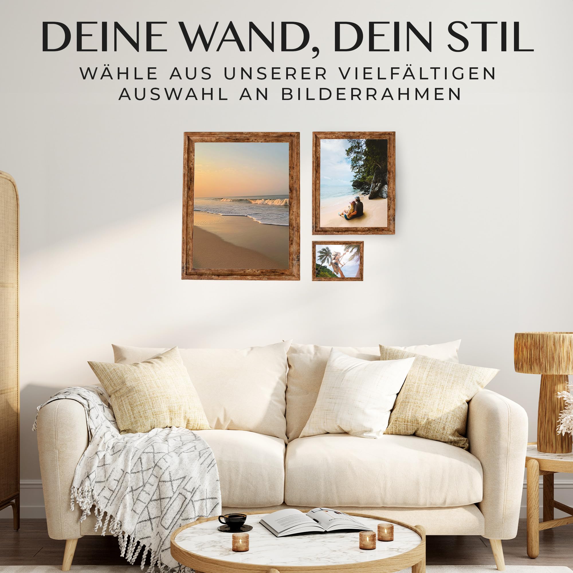 Le cadre photo « Narva » de Mein Landhaus apporte un aspect bois classique et chaud dans une forme élégante. Disponible en plusieurs tailles, le cadre Narva offre de nombreuses possibilités pour présenter vos motifs préférés avec style - et est également un excellent cadeau pour les personnes spéciales. Selon la taille, le cadre dispose d'un support intégré (13 x 18 cm, 20 x 30 cm) et/ou d'une suspension murale (tous les formats). Choisissez nos cadres photo en noyer pour encadrer et chérir vos plus beaux souvenirs. Que vous ayez une photo de votre famille, de votre animal de compagnie ou de votre destination de vacances préférée, avec un cadre photo de , vous pouvez accorder à ces souvenirs l'attention qu'ils méritent Cadre Photo Noyer 40 X 50 Cm Avec Passe-Partout, Cadre En Bois Fiorito... Mein Landhaus Cadre Photo Narva Noyer - Cadre Photo En MDF Avec Verre Fabriqué en MDF solide avec un grain de noyer fin, ce cadre met en valeur vos souvenirs personnels, photographies, certificats ou impressions d'art avec goût. Mein Landhaus Bois Véritable Vintage Cadre Toskana Im Rustique Shabby Aspect bois élégant : cadre photo en MDF avec grain de noyer réaliste, élégant, chaud et naturel Le cadre est idéal pour le salon, le couloir, la chambre à coucher ou le bureau et convainc aussi bien comme pièce unique que dans un ensemble de cadres pour des photos créatives. Utilisation polyvalente : convient pour les formats portrait et paysage, idéal pour les photos, les posters, les certificats ou les impressions d'art