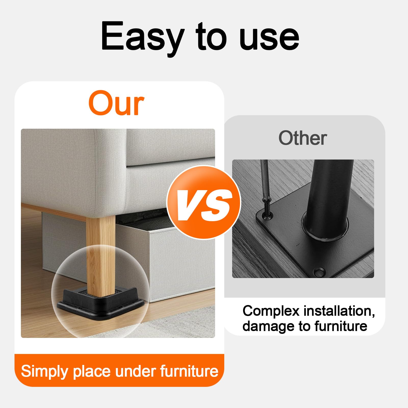 Veuillez vérifier les dimensions sur les images du produit et mesurer le dimension du pied du meuble chez vous pour vous assurer que ce produit est de la bonne taille pour vos meubles Ne convient pas aux fauteuils à bascule, aux meubles à roulettes, aux échelles ou aux meubles aux pieds trop fins ou pointus. Pour toutes les bricoleurs sur table ou établi. Cet ensemble de 4 rehausseur pieds de lit est conçu pour s'adapter uniquement aux meubles à 4 pieds. Nous fournissons à la fois des patins antidérapants sous les rehausseurs de lit pour éviter de rayer le plancher, ainsi que des patins antidérapants entre les rehausseurs de lit et les pieds des meubles afin de protéger vos meubles Uping rehausseur présente une conception solide avec un squelette interne robuste, résolvant efficacement le problème de la rupture centrale. Rehausseur De Table, 8 Pcs Pieds De Lit Rehausseurs De Meuble Augmenter... Pour faciliter les travaux de nettoyage sous les meubles, notamment pour les robots aspirateurs. Veuillez vérifier les dimensions sur les images du produit et mesurer le dimension du pied du meuble chez vous pour vous assurer que ce produit est de la bonne taille pour vos meubles., Note: Solution simple mais efficace -- il vous suffit de placer Uping rehausseur meuble sous les pieds du meuble, vous pourrez alors obtenir une hauteur supplémentaire de 5,5CM à votre meuble. Se soucier problème Épuiser rehausseur pied de lit castorama chance Violet Crimi Appliquer sur les lits, canapés, chaises, armoires, tables et plus encore. Rehausseur Cuisiniere Pied De Support De Cadre De Lit Rehausseur De Lit Universel Rehausseur De Chaise Rehausseur Chaise Les meubles comportant plus de 4 pieds nécessiteront 2 ensembles de rehausseurs. Utilisations multiples -- création d'un espace de rangement supplémentaire sous le lit ; Faciliter les travaux de nettoyage sous les meubles, notamment pour les robots aspirateurs ; Faciliter l'entrée et la sortie du lit pour les personnes âgées ou blessées C’est un grand confort d'avoir la table à hauteur ergonomique. 4 réhausseurs de lit réglables. 308 avis · TE-1731. Poids max. supporté : 700 kg; Matière : Plastique; Couleur : Noir ; Lot de 4 pieds rehausseurs de lit eco. 170... Pour personnes ayant des difficultés au coucher ou au lever du lit.