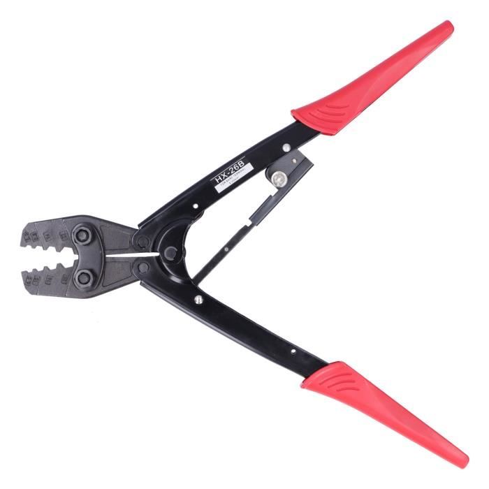 Fabriqué en acier de haute qualité, de haute dureté et à utiliser. Sertissez sans effort avec l'ensemble d'outils de sertissage à cliquet VEVOR doté de mâchoires à code couleur, d'acier au carbone durable et d'une conception ergonomique pour les connecteurs AWG22-10. Pince à sertir les embouts 0.08 mm² à 10 mm² à empreinte carrée Léger, facile à utiliser. Largement utilisé : la pince à sertir convient à e variété de câbles. PORTABLE ET PRATIQUE - De petite taille, léger, design compact, facile à utiliser et à... Pince à Sertir Professionnelle Pince à Sertir Les Fils GOTOTOP - HX-26B - Outils Manuels 6-25 Mm² Pince A Sertir Rs Spécification: Condition: tout neuf Modèle: Matériau: acier à haute teneur en carbone + plastique Capacité de sertissage: 22mm² Longueur totale: env., 189mm/7., 4in Longueur du manche: env., 135mm Poids: env., 229g/8., 1oz Liste des packages: 1 * presse-câble Il est pratique de manipuler le plastique sans glisser.