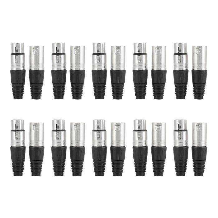Xlr 5 Broches KAI-Prise XLR 5 Paires De Prises Audio Pour Microphone D'alimentation Cable Xlr Male Femelle Coque en caoutchouc pour une surface lisse sans bavures et le bruit peut être bien protégé. Offre une transmission optimale du signal. Vert - 3M - Câble XLR 3 broches mâle à femelle prise Canon câble Audio... La fiche XLR 5 broches est robuste avec sa partie métallique et son filetage facilite le montage et le démontage .Les broches sont facile à souder, les contacts... Cela permet aux extrémités de s'enclencher sans se desserrer. DMX XLR 5 Broches Fiche mâle et Prise Femelle Connecteurs à souder Un package rentable et fiable pour tous ceux qui ont l’intention de l’utiliser. Extrémité métallique verrouillable : la prise XLR femelle a une extrémité verrouillable avec un œillet métallique. FONCTION DU CÂBLE - La prise XLR est idéale pour les connexions audio et la connexion de microphones et autres appareils d'enregistrement. Keple Prise XLR 5 broches, noire - prise pour microphone audio prise DMX, adaptateur nickelé, fiche métallique avec boîtier en plastique COMPATIBILITÉ ÉTENDUE - Adaptateur XLR pour le secteur audio professionnel.