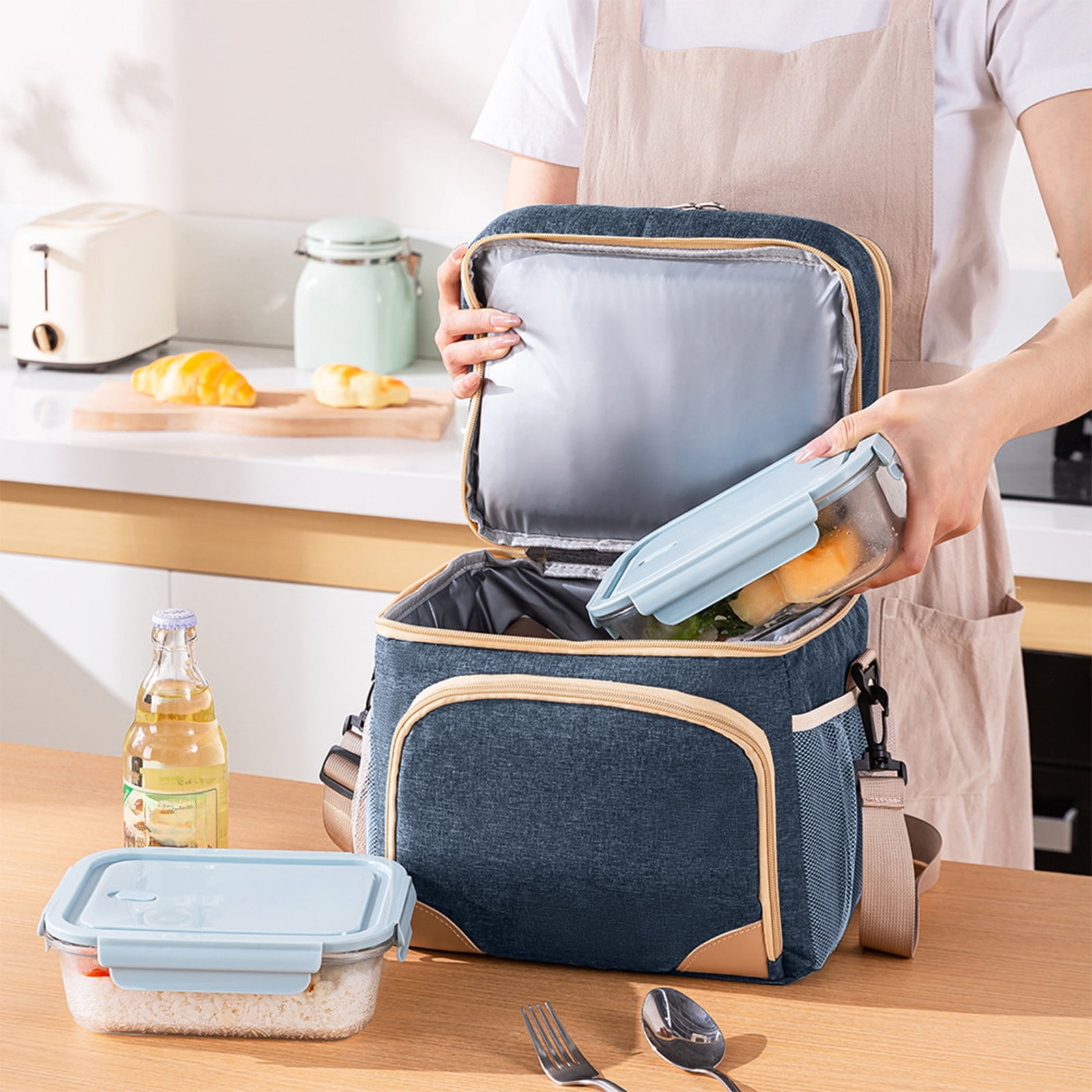 Le sac à déjeuner pour femme avec deux poches métalliques à fermeture éclair est conçu pour séparer vos aliments de vos couverts. Équipé d'une bandoulière amovible, une variété de méthodes de transport, la bandoulière peut être librement ajustée en fonction de la hauteur. Cadeaux pour hommes et femmes : ce sac à déjeuner isotherme avec un design bicolore, l'apparence est plus tendance et offre une large gamme de couleurs au choix, imaginez à quel point ils seront surpris quand ils recevront ce sac fourre-tout inoubliable, le sourire sur leur visage ne mentira pas, ils l'adoreront vraiment. Fasiaou Sac à Lunch Isolé pour Femmes Sac Compact Réutilisable Sac Isotherme Artisanat exquis : la corde à main lisse et résistante adopte la technologie de couture à la machine à haute pression, qui est durable et ne se déchire pas facilement. Vous pouvez stocker et conserver les fruits et les aliments en toute confiance. Sac Isotherme Repas, Petit Sac Lunch Box Étanches, Sac Glaciere Imperméable en Feuille d'Aluminium, 5L Sac Lunch Isotherme pour Femmes, Hommes, Enfants, École e... Les taches sur la doublure peuvent être essuyées avec du papier absorbant et sont très faciles à nettoyer. Garde les aliments au chaud jusqu'à 8 heures (en fonction de la température locale). Idéal pour les hommes et les femmes pour emballer de la nourriture et des boissons pour le travail, les pique-niques, la plage, les voyages, le camping, les voyages ou toute activité de plein air. Ce cadeau est un cadeau romantique pour votre femme, fille, mari, fils. Conservez vos repas frais et délicieux en toute occasion. Compact, chic et fonctionnel, il s'adapte à votre rythme. Déjeunez avec style, où que vous soyez Sac Isotherme Repas Chaud Sac à Déjeuner Isolé Et étanche, Boîte à Déjeuner Pour Adultes Et Sacoche Isotherme Femme Multi-usage et pratique : dimensions du sac à déjeuner : 26,7 x 15,9 x 30,5 cm (L x l x H).