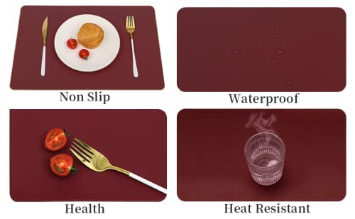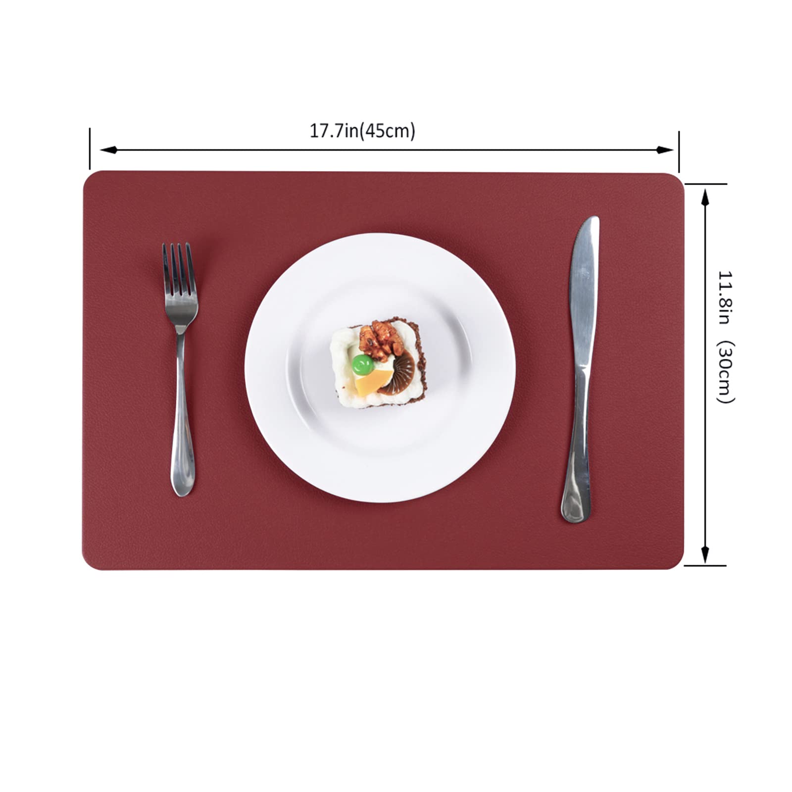 Épais et résistant à la chaleur : les sets de table sont conçus avec une texture double face, avec une texture claire. Il n'est pas recommandé de placer les bols ou assiettes qui viennent d'être chauffés au micro-ondes directement sur les sets de table. Table A Manger Nor Large gamme d'applications : ces sets de table sont durables au quotidien et sont également assez attrayants pour les occasions spéciales. Lorsque vous les mettez dans un endroit ventilé, l'odeur disparaîtra. Épais avec une épaisseur de 2,3 mm. En même temps, les sets de table sont durables, de sorte que vous n'avez pas à craindre l'abrasion des enfants et les abuser. Le design de couleur unie rend le set de table plus texturé, élégant et simple, adapté à toutes les occasions, telles que la cuisine, la table à manger, le bureau, le bureau, le café, le restaurant, l'hôtel ou le bureau d'affaires, etc C'est un substitut parfait aux sets de table tissés Sets de table imperméables en simili cuir dans un ensemble de couleurs rouge vin de 4 · Facile à nettoyer et à entretenir, adapté à une utilisation intérieure et... Nous sommes convaincus que vous aimerez nos sets de table. Set De Table Rectangulaire Vinjiasin Lot De 6 Sets De Table En Cuir Noir Pour Cuisine, Salle Set De Table Cuir Imperméable et facile à nettoyer : le set de table en cuir est imperméable et résistant à l'huile, l'huile et l'eau ne pénètrent pas. Lorsqu'il y a une boisson ou une sauce dessus, il suffit de l'essuyer avec un chiffon humide ou du papier Précautions d'emploi : 1., Les sets de table ne peuvent pas être lavés en machine, il suffit de les essuyer avec un chiffon humide ou une éponge., 2., Ne pas tremper dans l'eau pendant une longue période. Les sets de table peuvent supporter une chaleur jusqu'à environ 80 °C. Taille et matériau : la taille du set de table en cuir est de 45 x 30 cm, lot de 4., Le set de table est fabriqué en cuir synthétique de haute qualité, qui est robuste, ne raye pas la table, est sûr et sain, et peut être en contact direct avec les aliments Vinjiasin Juego De 4 Manteles Individuales Verdes Para Mesa De Comedor Impermeables Lavables Resistentes Al Calor Reversibles Faciles De