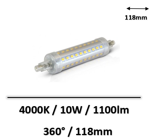 Lampe R7s LED 360° 10W 4000K 1250lm - ARIC SA Super compact avec un diamètre de seulement 25 MM , longueur 118 MM r7s 78mm Ampoule Led 10w Double Extrémité Led Cob Lumière d’Inondation... Ampoules 78mm 10w Ampoule LED R7S 10 W De Forme Crayon R7s Led Avec une consommation de seulement 10W, cette lampe R7s LED émet un flux lumineux de 1050 lumens. La technologie LED est particulièrement utile dans cette lampe... 360 angle de lumière