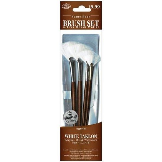 Description du produit: Royal & Langnickel - RSET-9166 Le set de pinceaux Zip N´Close représente notre gamme moyenne en terme de qualité de pinceaux. Ensemble de 4 pinceaux Taklon blancs avec long manche dans un sac Zip N Close pour peintures acryliques, aquarelles, à l'huile et à la tempera. Tour 1. Lumineux... Royal & Langnickel Rset-9166 Set De Pinceaux éventail Taklon Peinture enfant GENERIQUE ROYAL & LANGNICKEL AQUALON WISP SET DE Le packaging est en plastique très robuste avec une fermeture éclair sur le côté, permettant l´utilisation et la réutilisation de cette pochette comme étui à pinceaux.