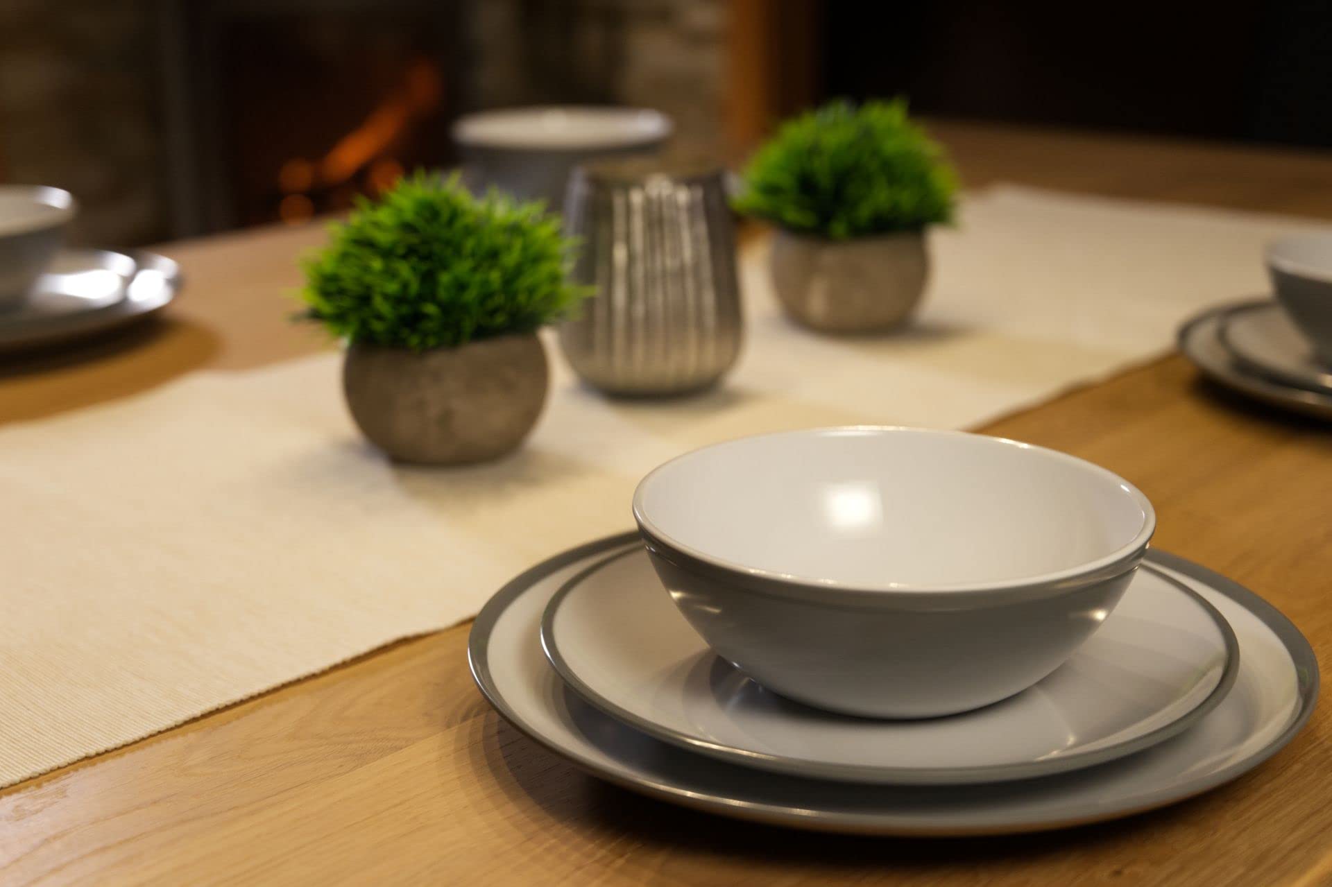 Issu de notre collection antidérapante de vaisselle en mélamine, l'ensemble dispose d'une palette de couleurs propres et neutres et de bases antidérapantes. Contenu de la livraison : 4 assiettes plates, 4 assiettes à dessert, 4 bols à céréales. Passe au lave-vaisselle – panier supérieur uniquement. Matériau: Mélamine haute résistance · Contenu du set: 12 pièces. 4 grandes assiettes ( 26,5 cm); 4 assiettes à dessert ( 21,5 cm); 4 bols (15,6 x 5,5 cm Vaisselle Classic White KAMPA - vaisselle mélamine blanc de bateau... Set Vaisselle 12 Pièces Luna VIA MONDO - Pack Vaisselle En Mélamine Cet ensemble de 12 pièces en 100 % mélamine, est extrêmement durable, léger et passe au lave-vaisselle. BÉABA, Set Vaisselle Silicone Repas Bébé, Avec Ventouse, Anti-dérapant Description du produit : Service de table en mélamine. Température nominale : -10 °C/+ 70 °C pendant 2 heures. Dimensions : hauteur du produit : 270 mm.